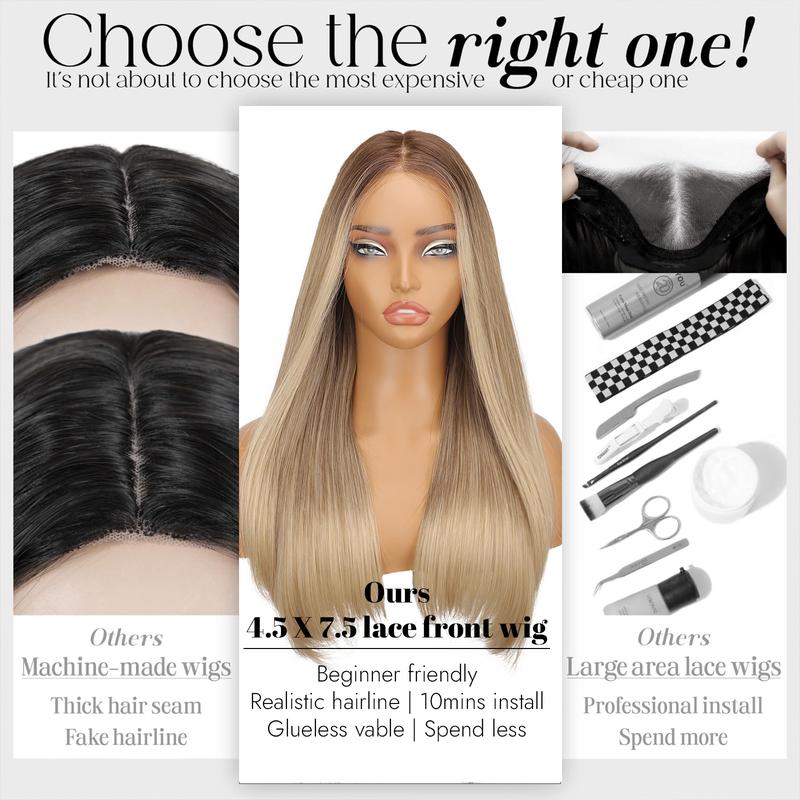 [AISI HAIR] 5X7 Synthetic  Lace Front Wig  ,Straight HD Lace Wigs 22 Inch Long Brown Wig Pre-Plucked Synthetic Wigs For Women