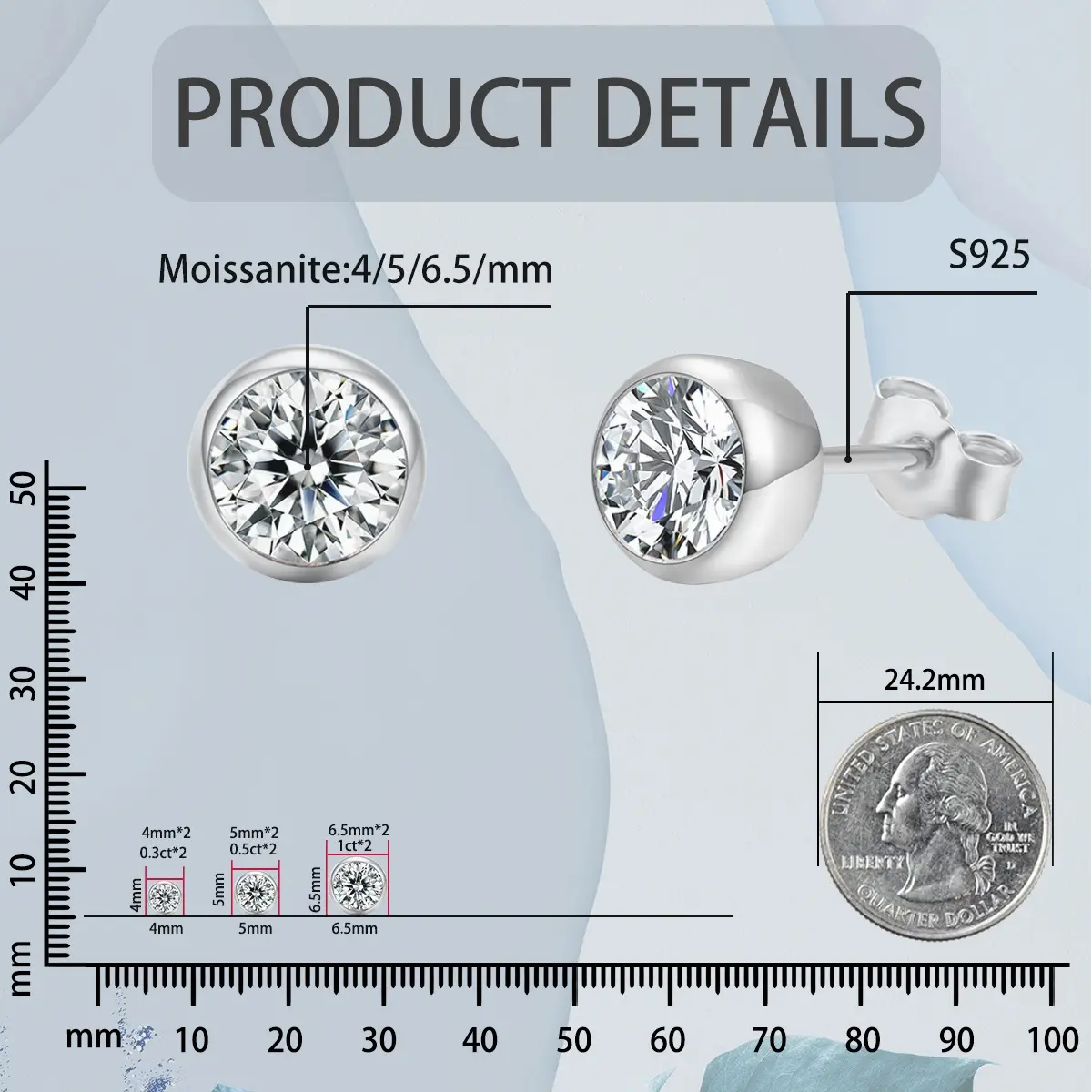 ·Size: 4.0mm(0.3ct*2)/5.0mm(0.5ct*2)/6.5mm(1ct*2)