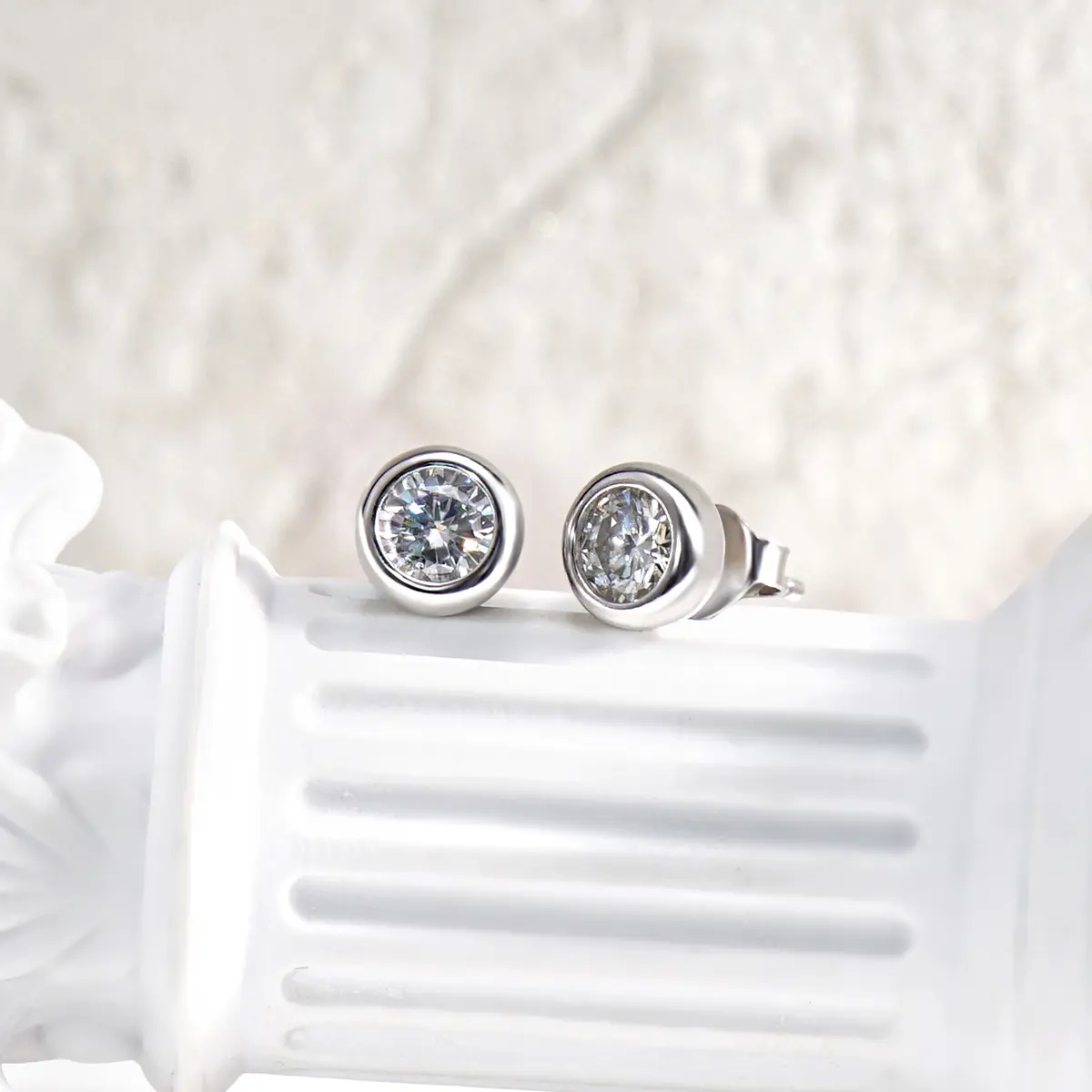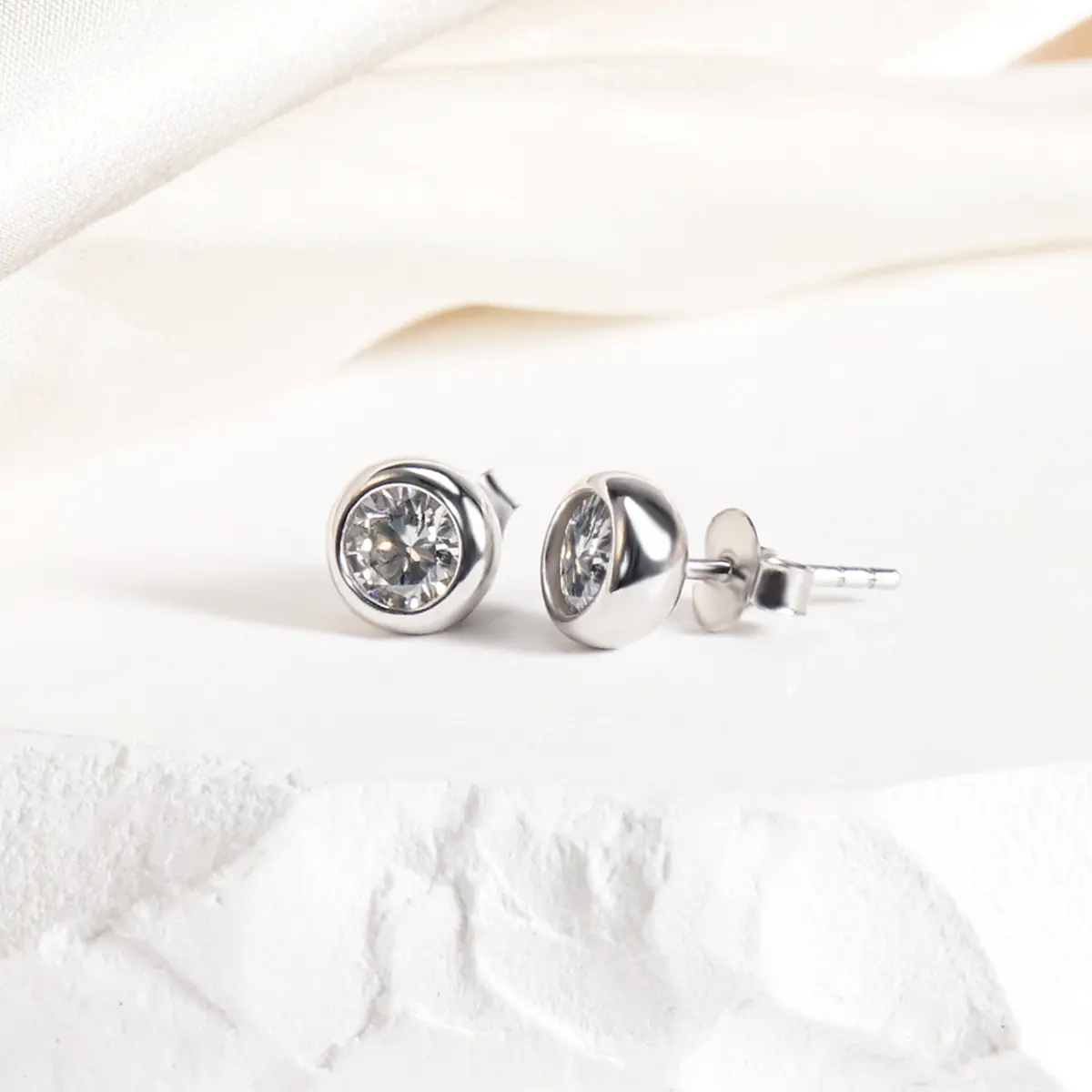 The bezel stud earrings delicately adorn your ears, making your style look exquisite!
