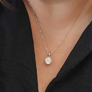 This necklace is a perfect choice for those seeking a timeless and elegant piece of jewelry with a touch of brilliance. The synthetic moissanite center stone ensures unmatched sparkle, making it a standout piece in any jewelry collection.