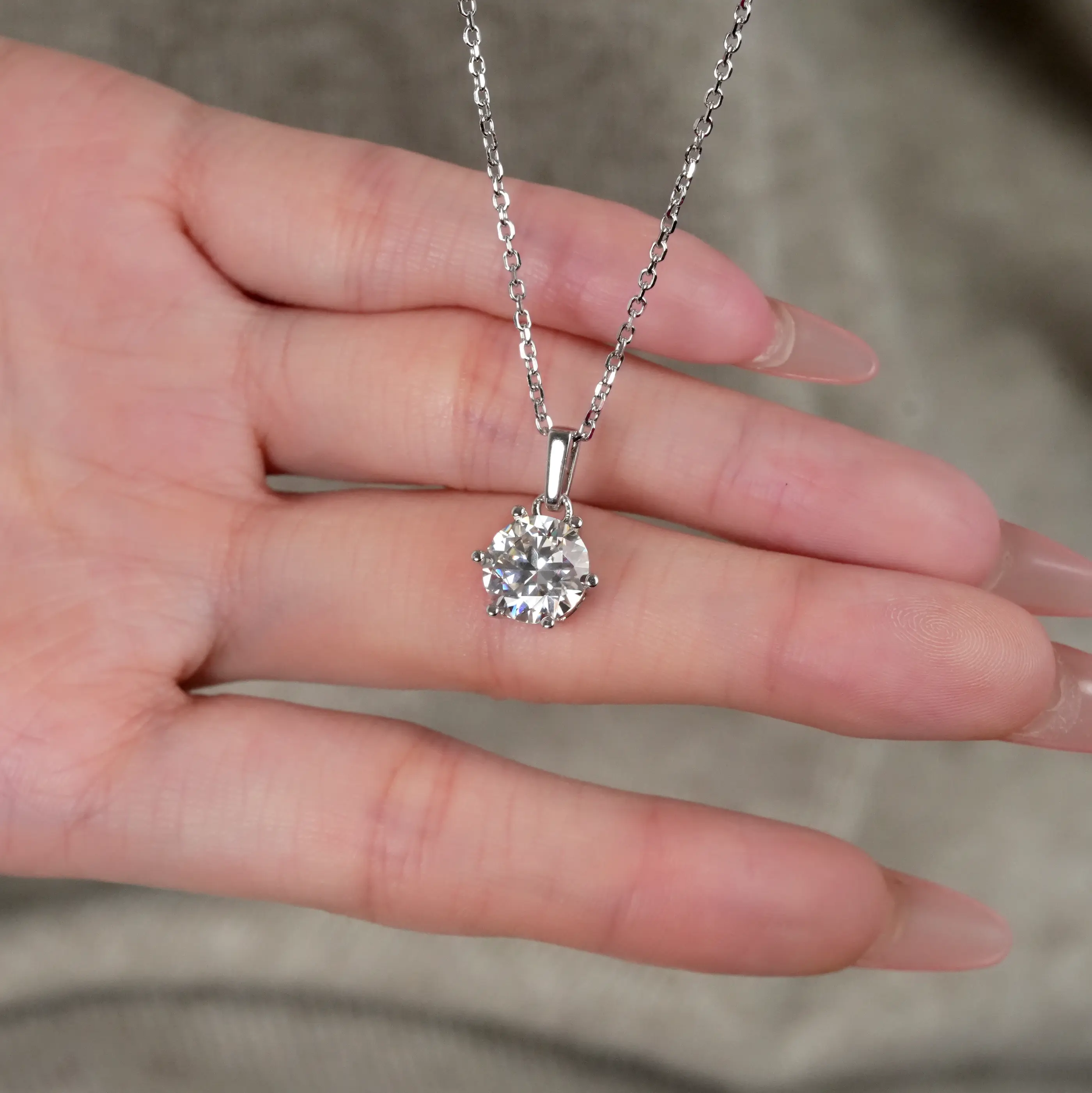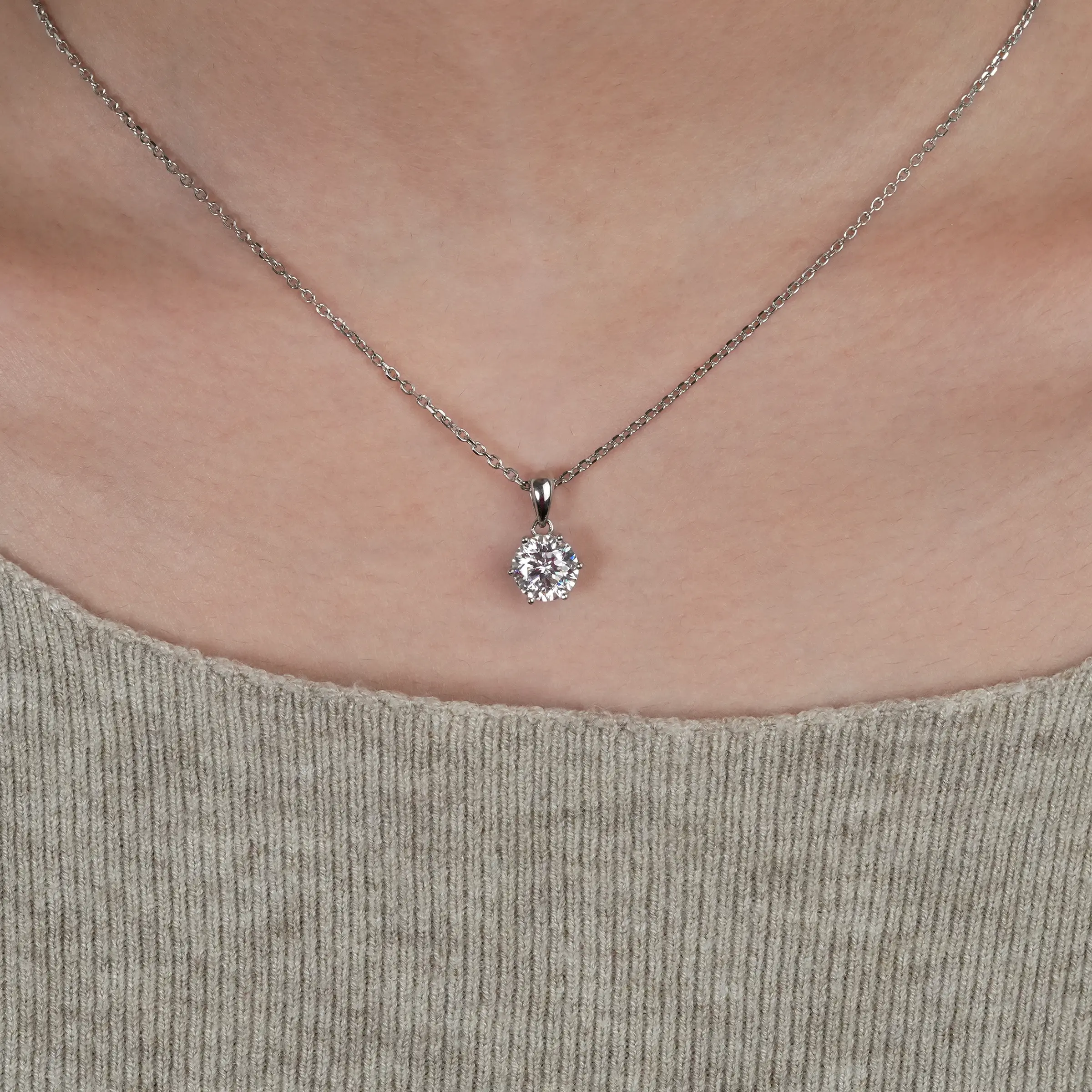 ·6-Prong Classic Necklace: Crafted from premium 925 sterling silver, known for its durability and timeless appeal.