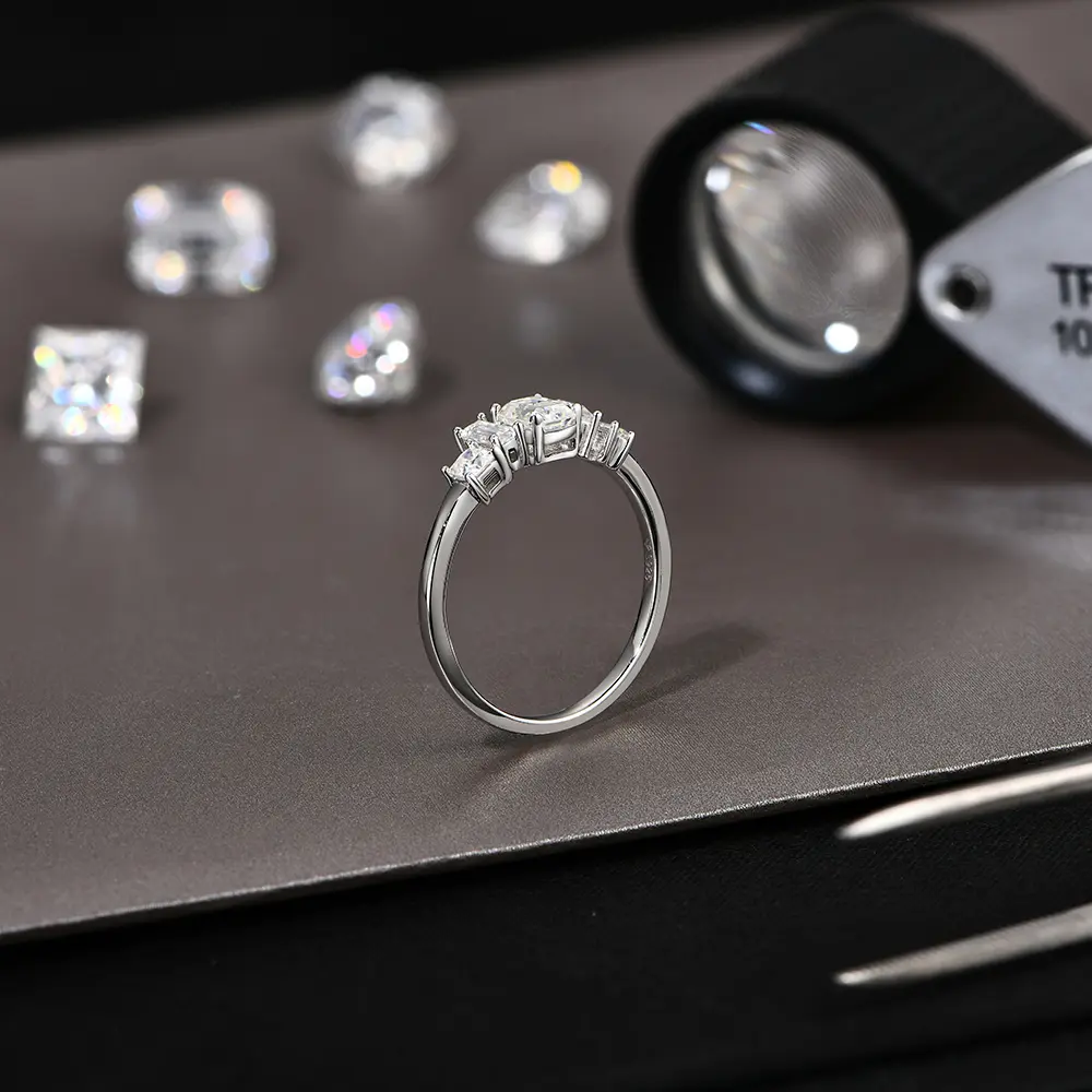 5. 5*4mm Synthetic Moissanite Ring Simple Daily Wear Birthday Present Fine Jewelry R167