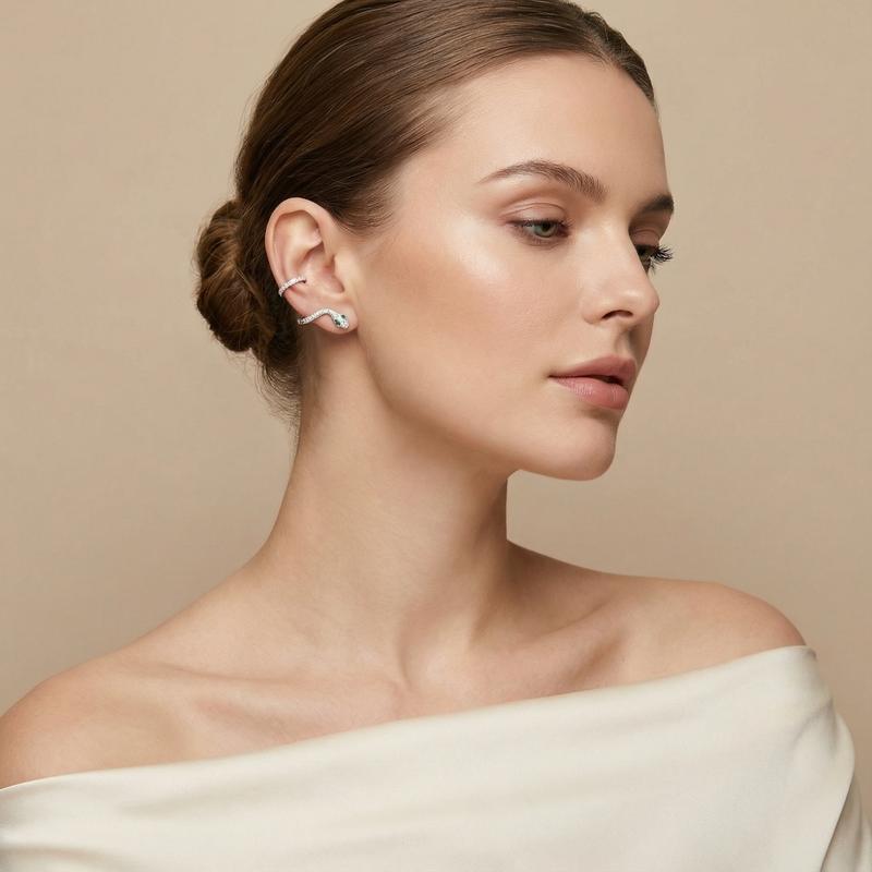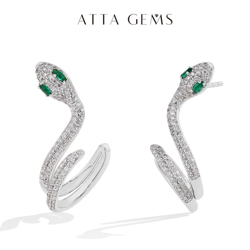 A snake that slithers up your ear… with emerald eyes and a moissanite glow. 🐍✨ Yes, it’s giving designer energy. #GlamWithAnEdge #moissanitejewelry #LuxeJewelry #snakeearrings #tiktoknewarrivals @Atta-jewelryUs