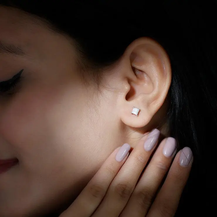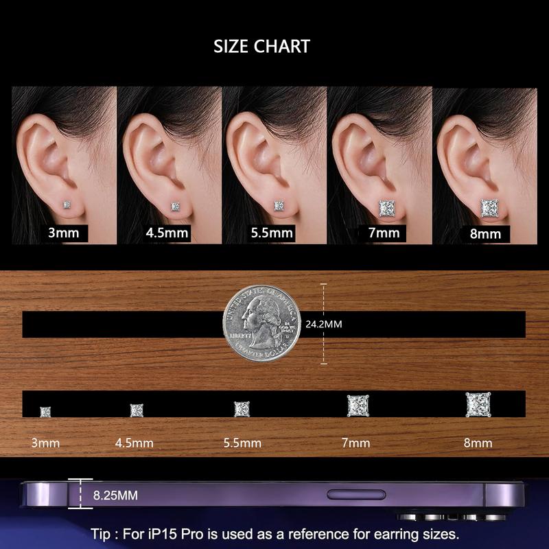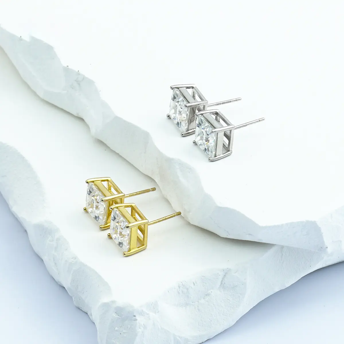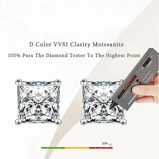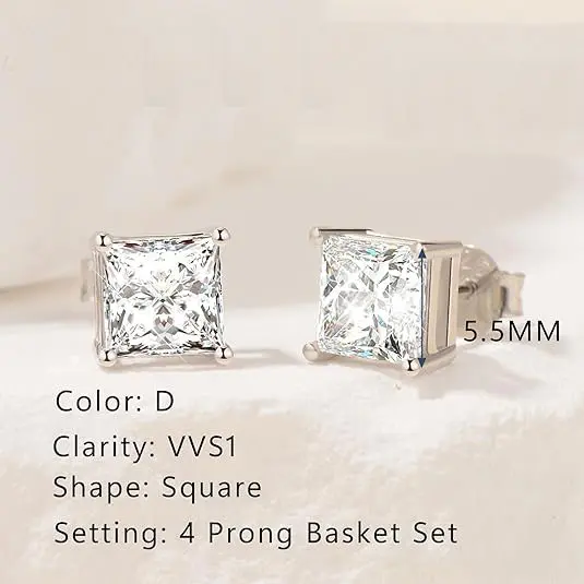 ·Excellent Princess Cut / D Color / VVS Clarity synthetic moissanite, which makes the earring classy, gorgeous and shiny.