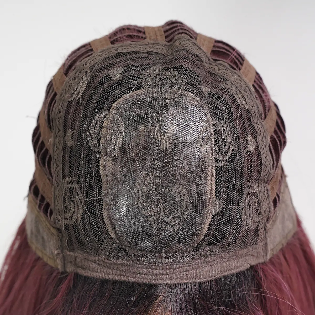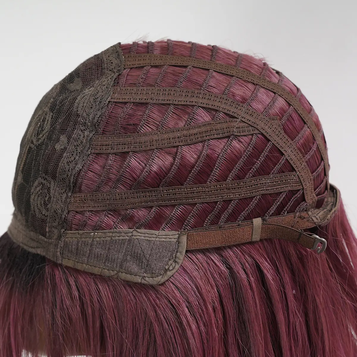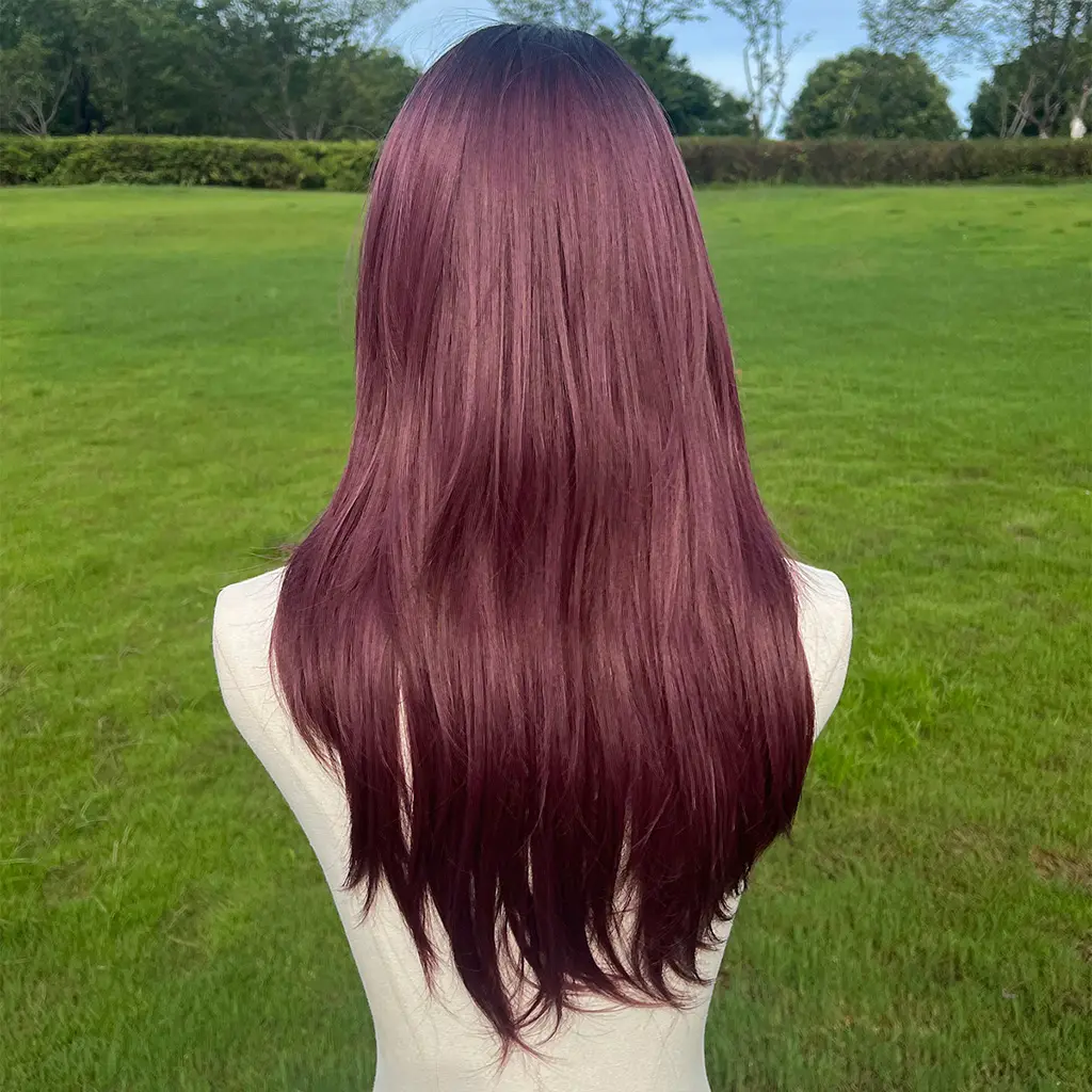 SMILCO/24Inch Berry Red Slightly Curly Synthetic Wig With Bangs/SM256