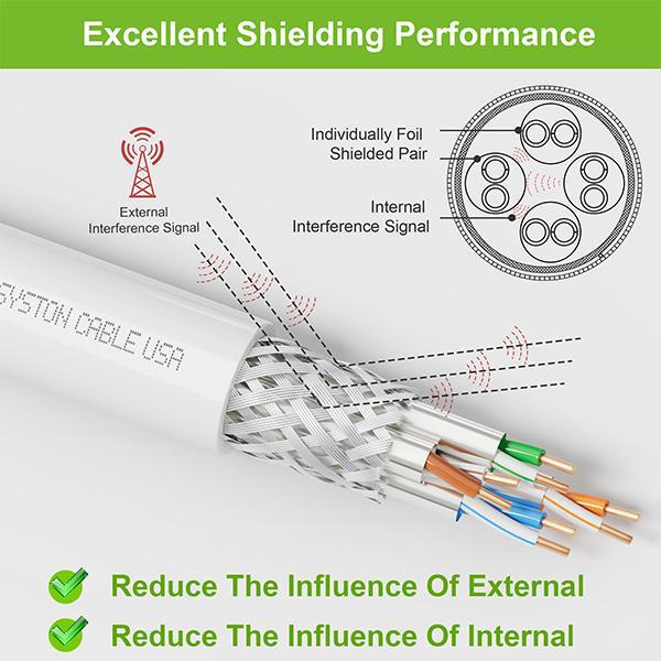 ·Advanced Quad Shielding (S/FTP): Eliminates EMI/RFI interference, delivering crystal-clear signal integrity even in high-noise environments.