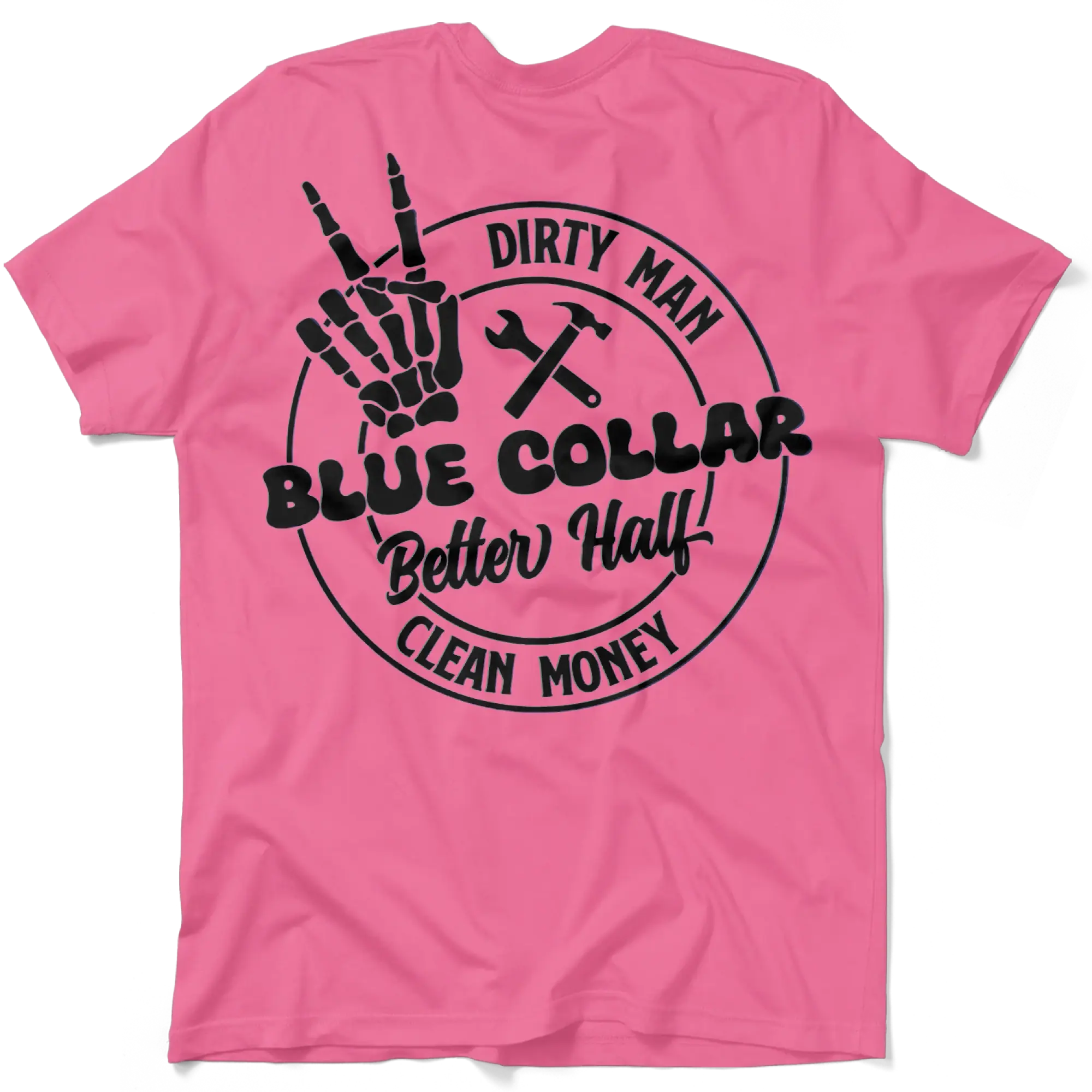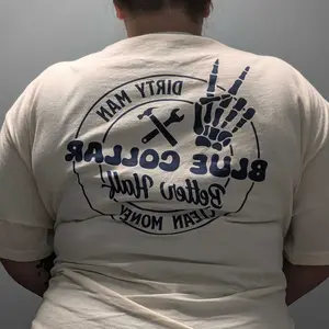 But the Dirty Man T-Shirt is more than just a piece of clothing – it's a symbol of solidarity and appreciation. By proudly wearing it, you're not only showing your support for your hard-working partner, but you're also joining a community of individuals who understand the importance of blue-collar work and the dedication it requires.