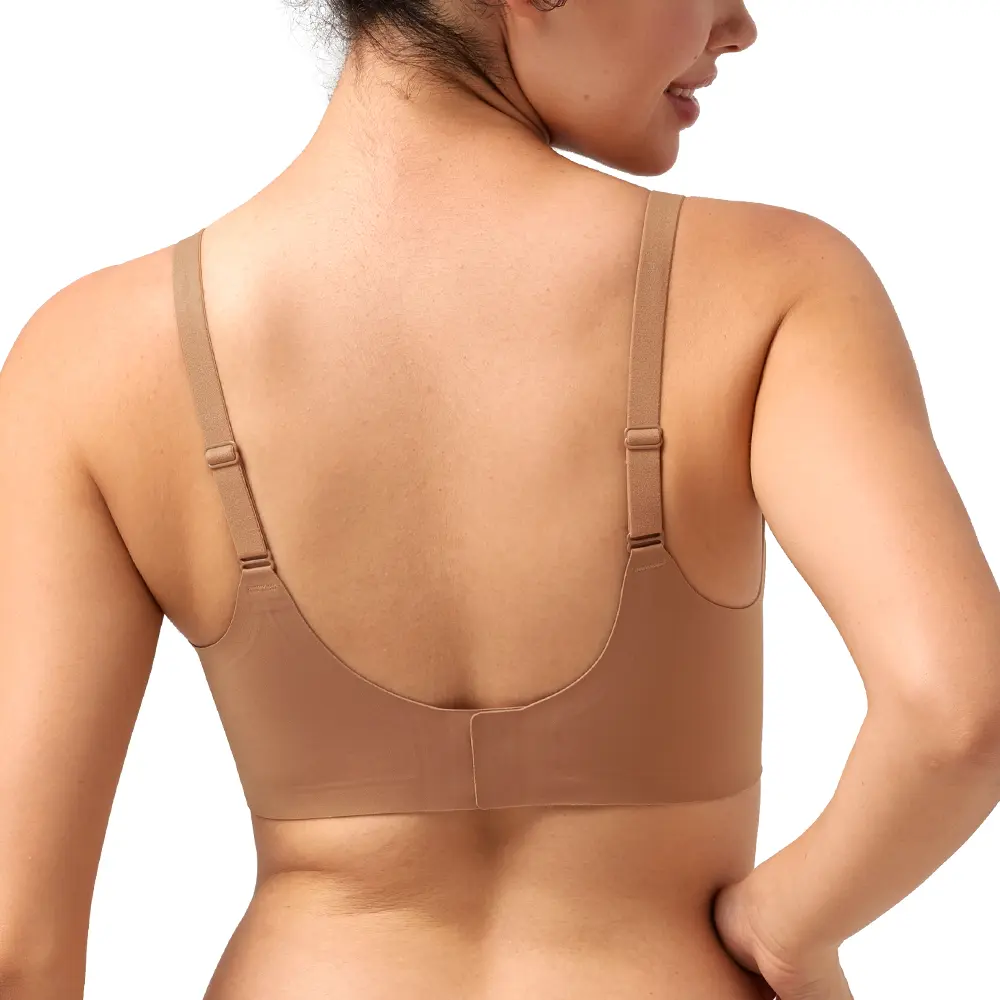 We’ve designed our adjustable straps to meet the needs of all body types, ensuring a secure fit that stays in place without slipping. Whether you’re working, exercising, or relaxing, the straps adapt to your body’s movements for maximum comfort. The no-show edges at the front and back of the bra eliminate irritation, so you can enjoy a seamless, skin-friendly experience.