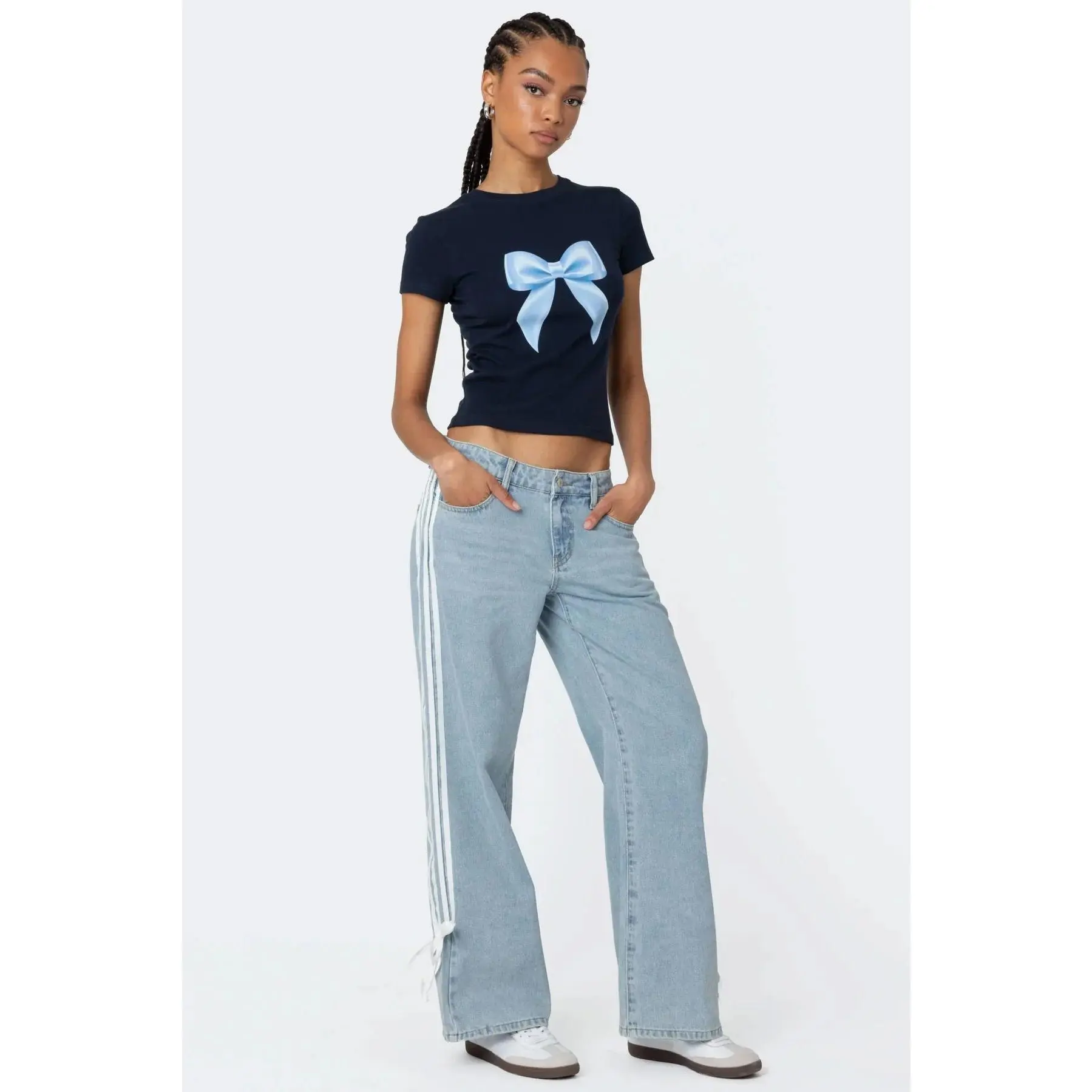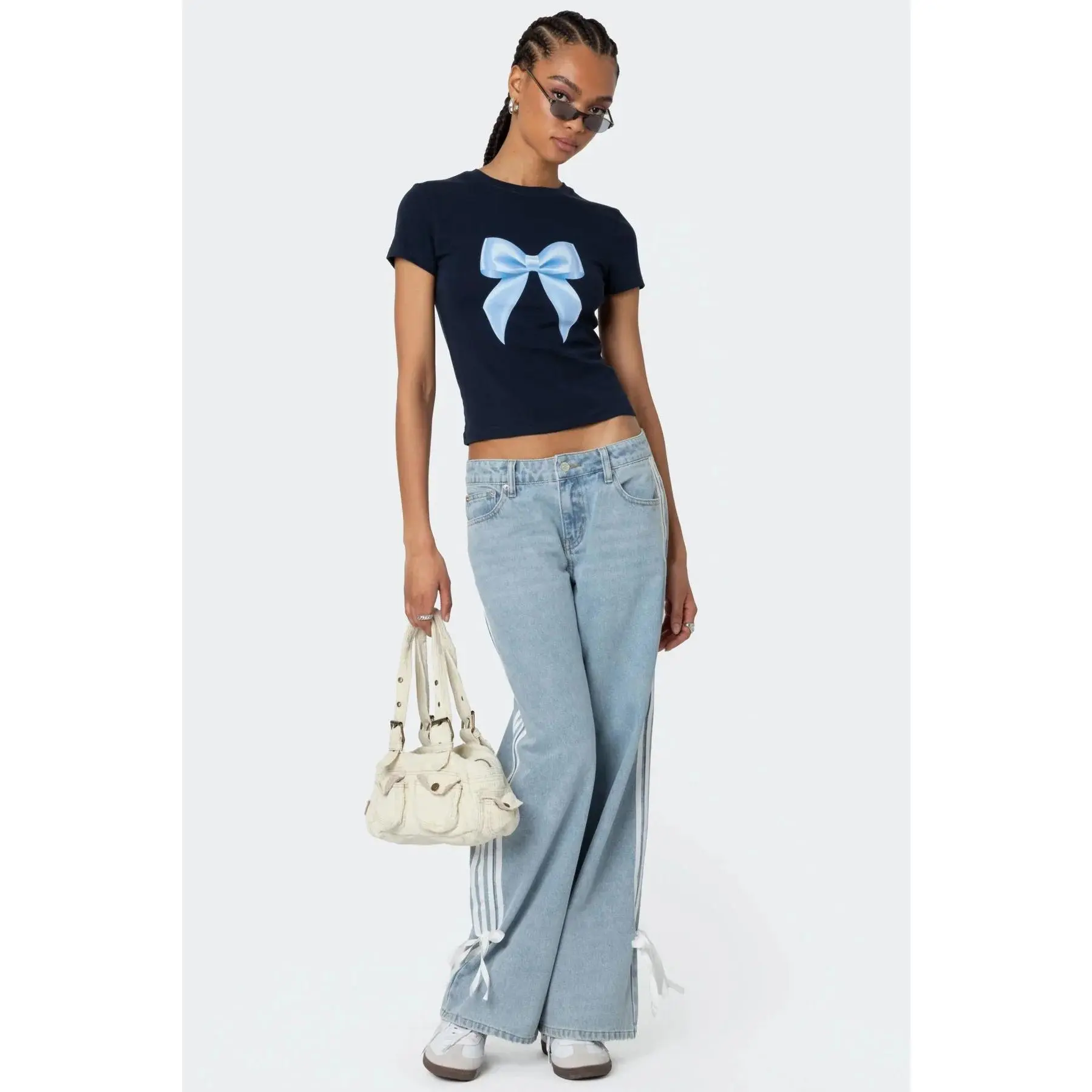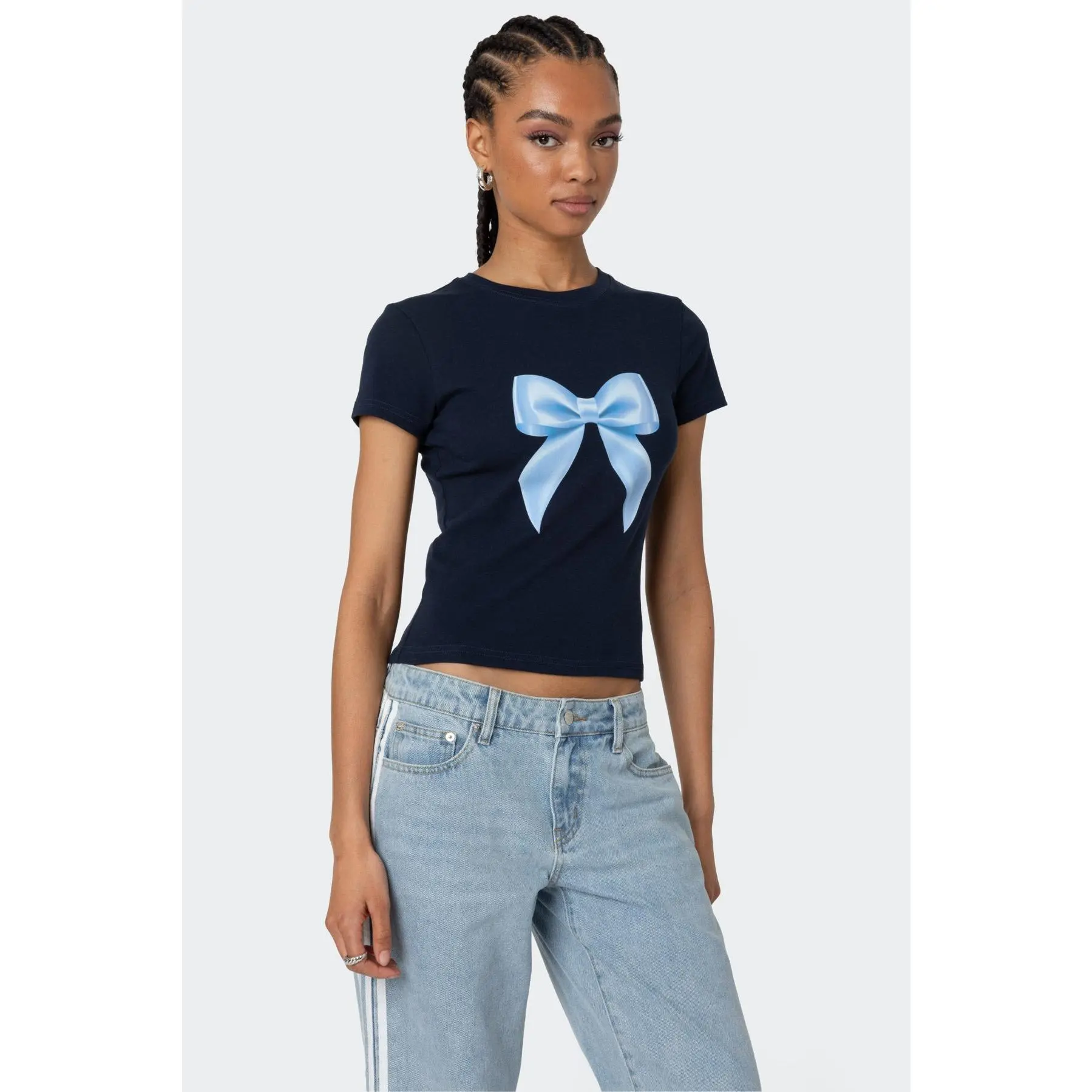 Today’s #ootd featuring my bow top from @Edikted and my leopard jeans from @hollister ! 🩵🎀🐆 #outfit #outfitinspo #outfitideas #edikted #hollister #outfitoftheday #coquette #fyp