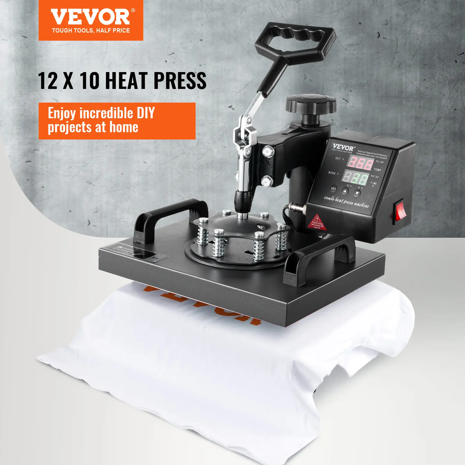• Multiple Application: With a 12"x10" heat platen, the heat press provides a large surface to transfer onto flat surfaced items. Suitable for applying letters, numbers, and patterns onto T-shirts, garments, bags, mats, jigsaw puzzles, etc.