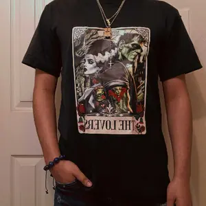 5. 100% Cotton Unisex The Monster Frankenstein And Bride The Lovers Tarot Card T-Shirt