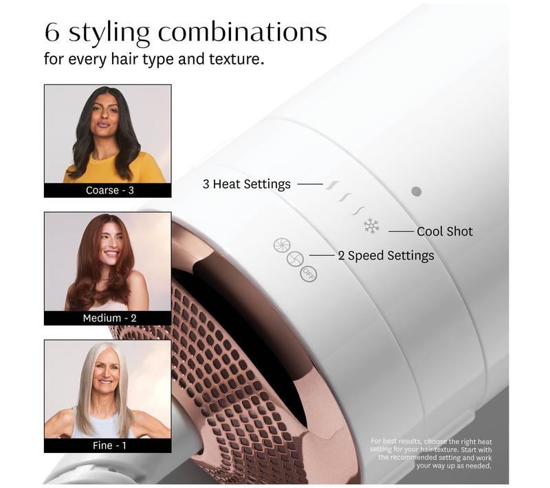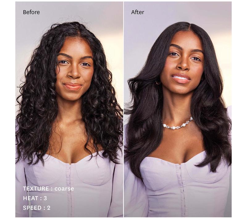 How do I use it: Use a towel or allow hair to air-dry until hair is free of any excess moisture. Thoroughly detangle hair, then use clips to divide hair into 3" to 4" sections before styling. Place brush at the roots of selected hair section and slowly brush through hair while applying tension. For smooth, sleek blowouts, place brush close to roots and brush down through the ends. For the appearance of voluminous blowouts, place brush under hair, close to the roots, and roll outward to the ends. For the look of extra lift at the roots, hold the brush under the roots for two to three seconds. To create bends and curls at the ends, place the brush under the ends of each section, rotate inward or outward, and hold for two to three seconds. Those with fragile or color-treated hair should take extra care to eliminate excess moisture prior to styling. Start at a lower setting and build your way up as needed.