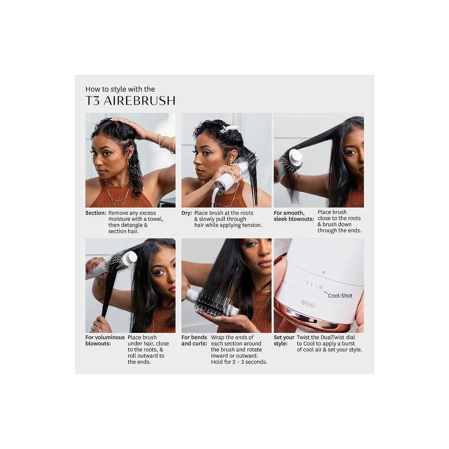 ·Designed to dry and style in one go, T3 AireBrush delivers even heat - no hot spots - that helps protect hair's natural moisture and shield against damage