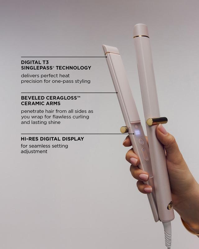 Powered by T3 SinglePass® Technology and CeraGloss™ ceramic, the Curling Straightener masters straight, curled, and wavy styles in a single innovative tool. Artfully designed with slim plates to straighten hair closer to the root. Its wraparound heated plates create perfect bends and curls with maximum control.