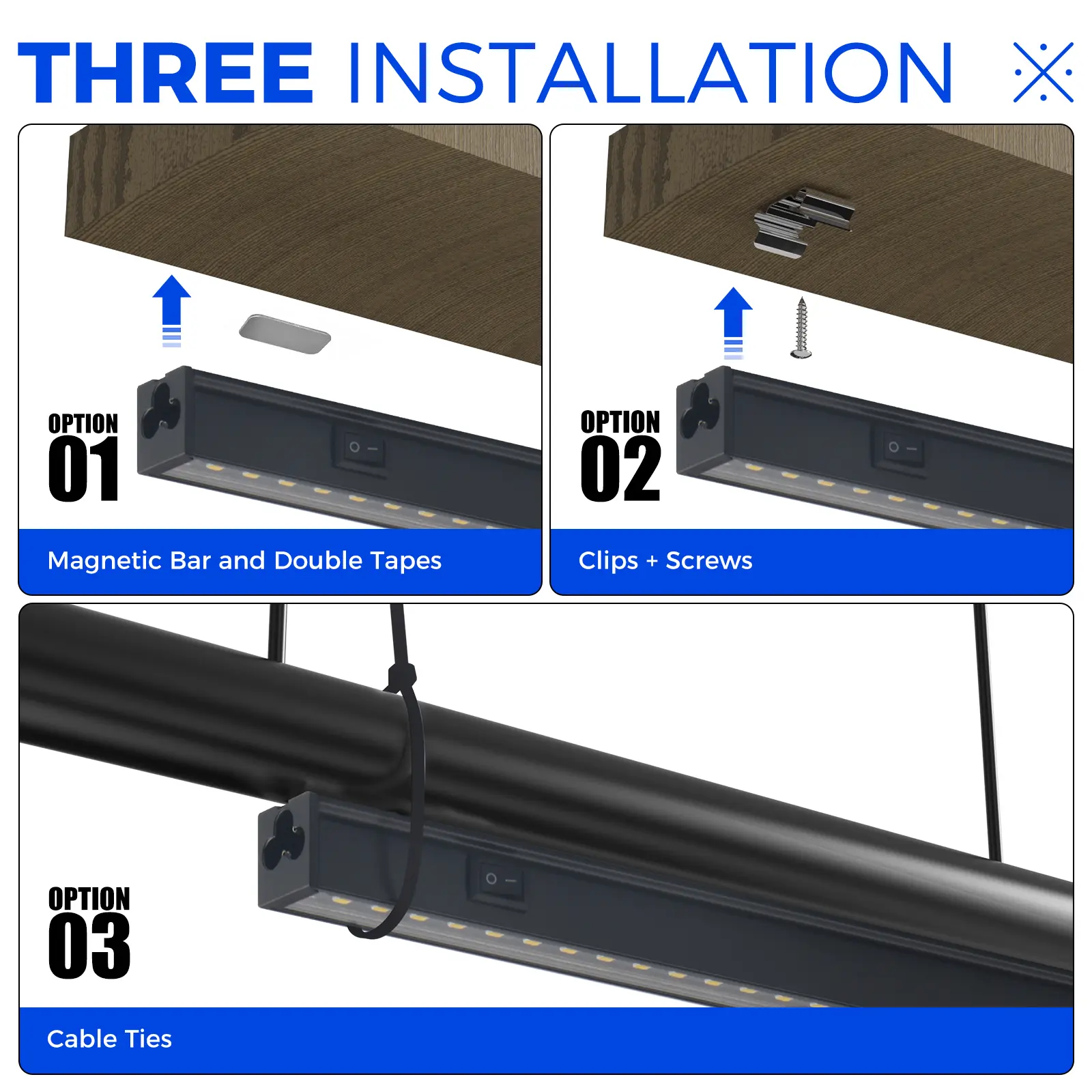 ·Easy Installation: With included clips, cable ties, magnetic bar with double-sided tapes, you could install this led plant light by yourself in minutes. Our grow light fixture can be directly attached to any magnetic surface and any non-magnetic surface