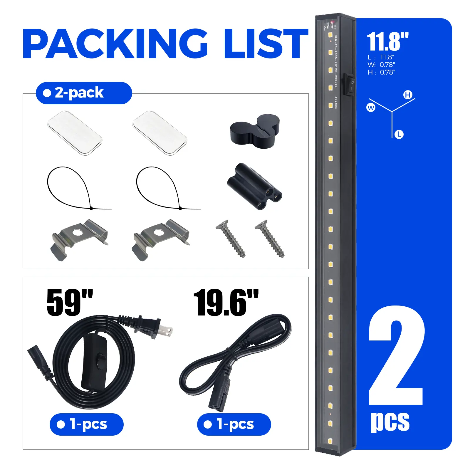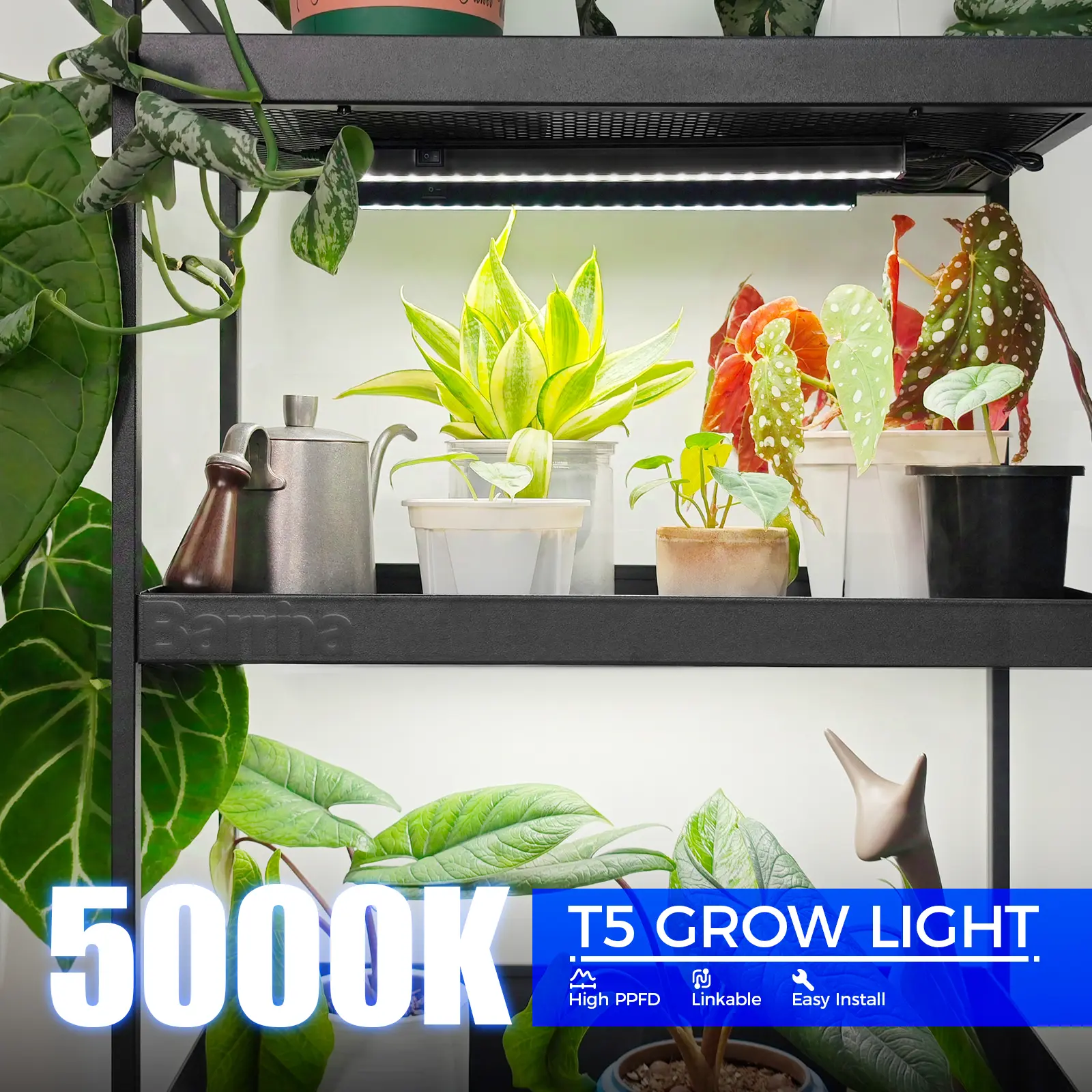 ·What You Get: 2 x Barrina T5 Grow Lights, 1 x Power Cords with ON/OFF Switch, 1 x Connecting Cords (20''), 1 x Small Connectors, 2 x Installation Clips, 2 x Magnetic Bars with Double-Sided Tape, 2 x Cable Ties, 2 x Dustproof Cap