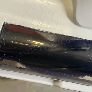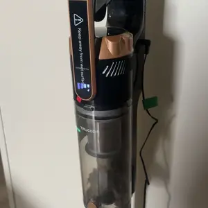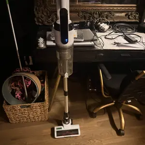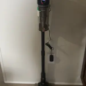 This works well. The main brush had a scratch under the “do not get wet” sticker but it still works fine. It stands on its own, has wall parts, an easy to clean brush, strong suction, a removable battery, height adjustment, and three modes. The green light helps you see dust. Overall decent.