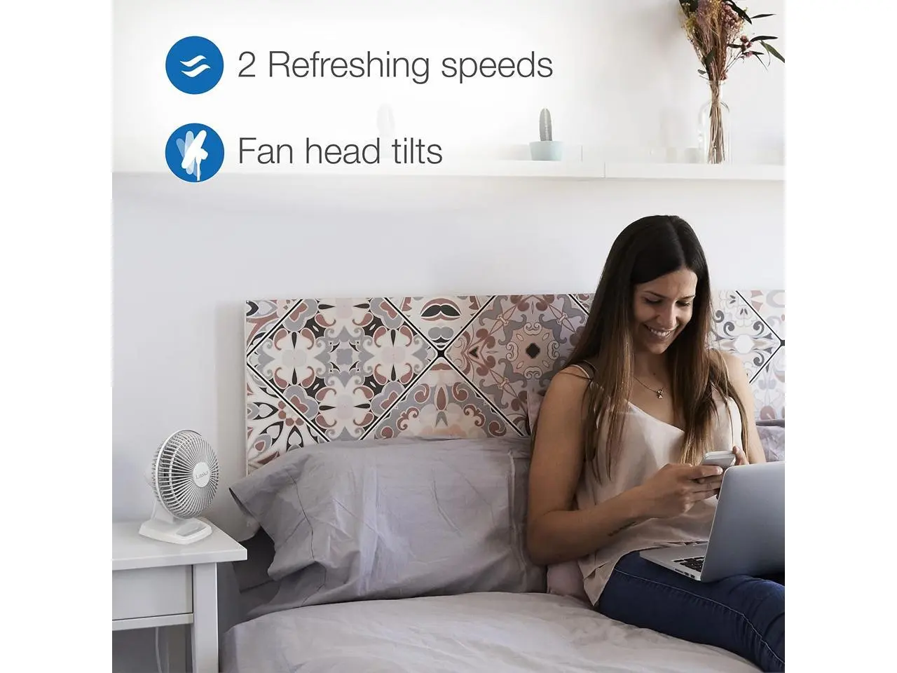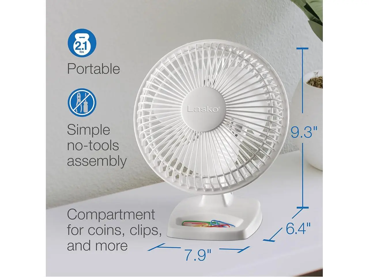 5. Lasko 6" 2-Speed Personal Table Fan with Storage Tray, 2002W, White
