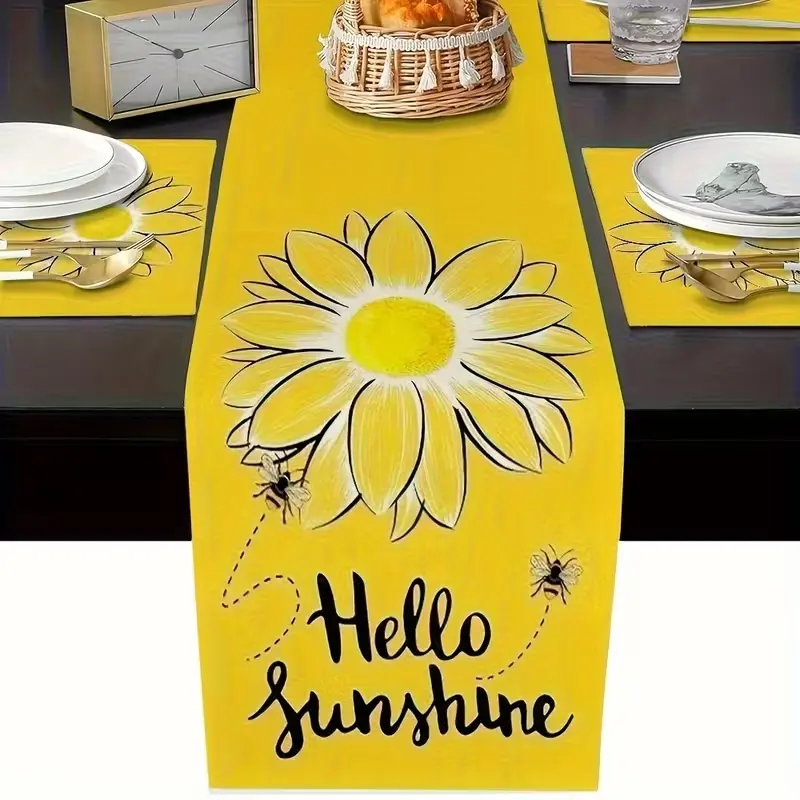 5/7-piece table flag+placemat combination Set, Decorative summer sunflower pattern design, Home Decor, suitable for kitchen, dining room, living room and indoor/outdoor wedding decoration