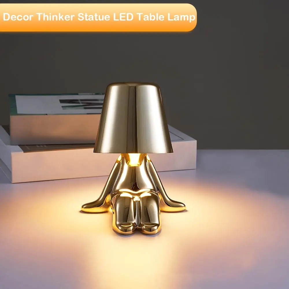 ·[Lovely Thinker lamp] : The bedside lamp is made of high-quality resin, which has structural stability and high temperature resistance. The bedside lamp glows warmly when it is turned on. Smooth surface, lovely thinker lamp body, full of modern elements and fun, a variety of shapes decorate your living room, bedroom to create a lively atmosphere.