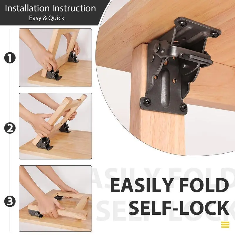 4/8 Pack Table Leg Folding Brackets for Extension Support, Locking Hinges for Table Legs, Bed Leg and Workbench Use Hardware