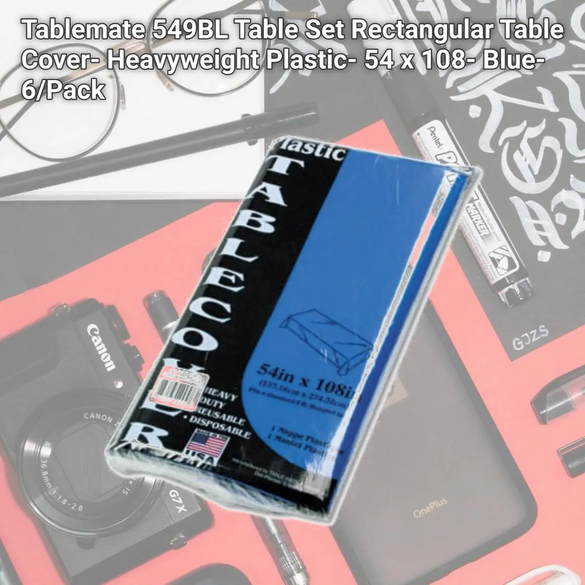 Tablemate Table Set Rectangular Table Cover- Heavyweight Plastic- 54 x 108- Blue- 6/Pack