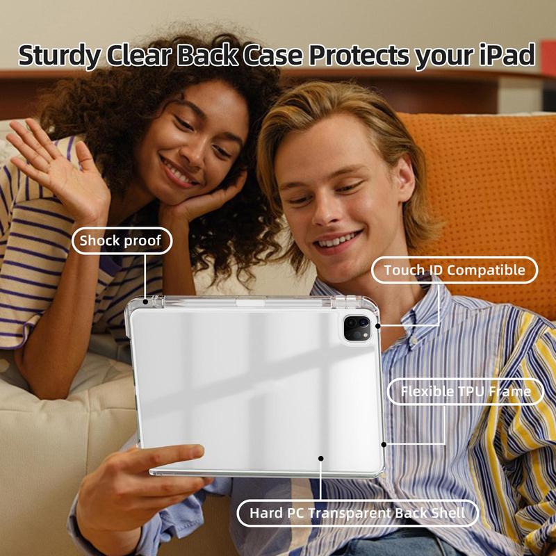 i got the black 10.9 inch case. it is so cute and durable. there is a film on the back that i didnt realize at first. once i peeled it off it was definitely more clear and not scratched.