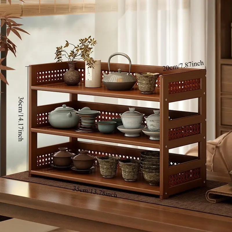 【Multi-layer Design】: Features three layers for ample storage space, perfect for organizing tea sets, water glasses, and coffee mugs.