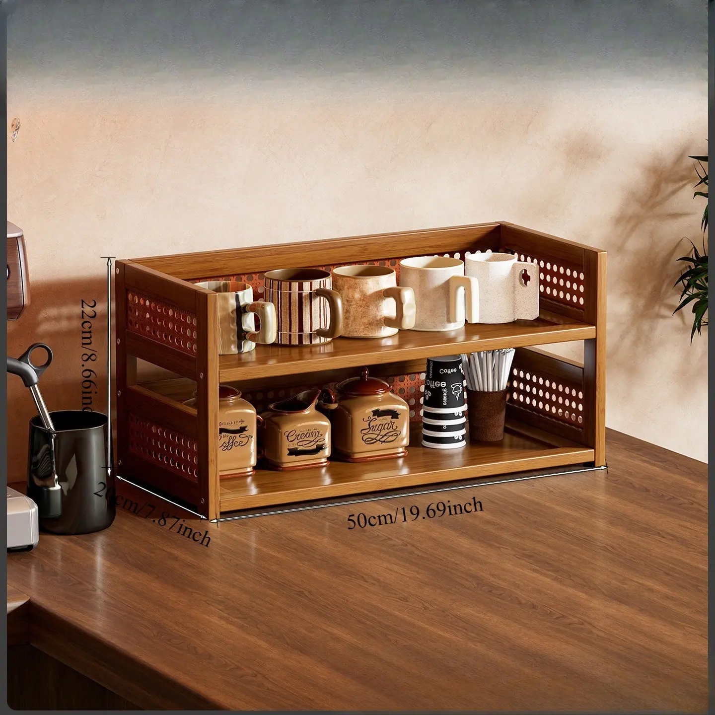 Tabletop Cup Holder Storage Display Rack, Tea Set Cups Water Glasses Coffee Mugs Organizer, Kitchen Counter Shelf, Bamboo Wood Stand