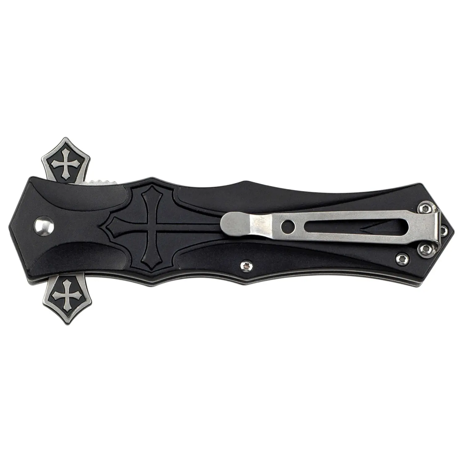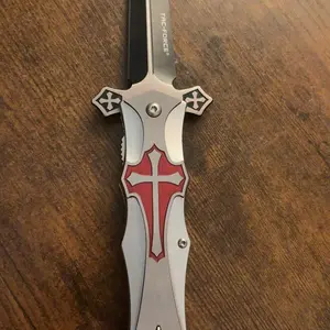 I'm a girl who loves switchblades and I'm a Christian and this knife is perfect for me. Mine just came in the mail today and I love the design and it's got a nice weight to it, it doesn't feel cheaply made even tho the price is very low. It's sharpness is decent. Overall it's my new favorite knife.
