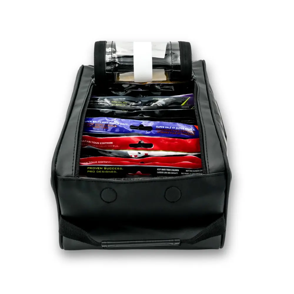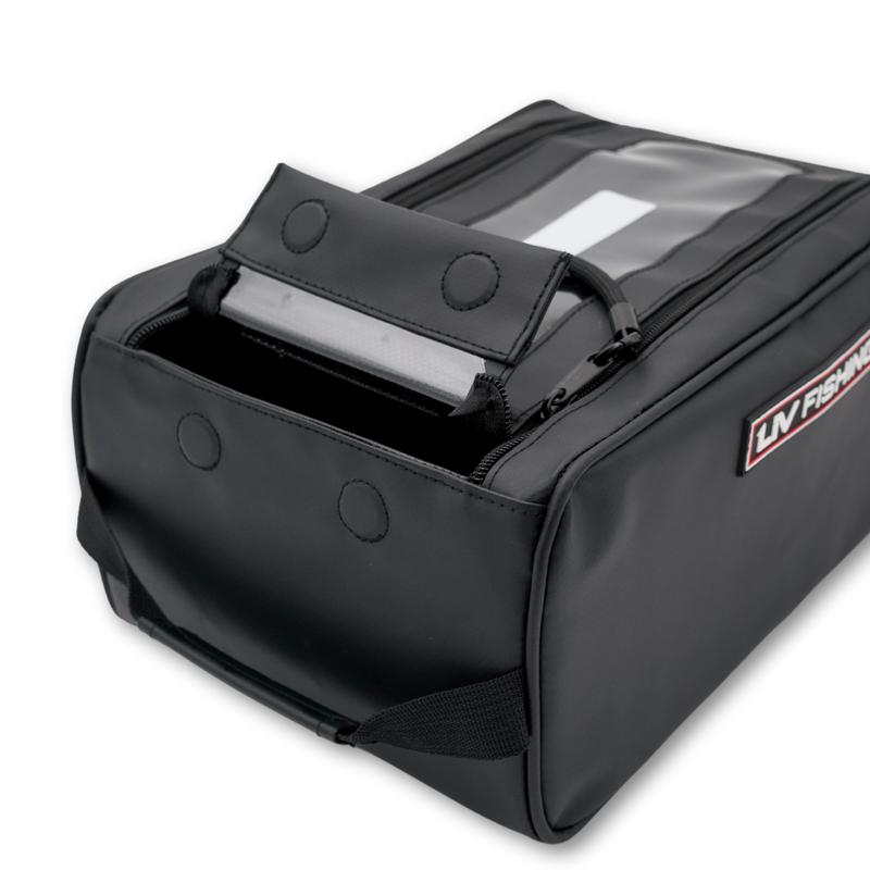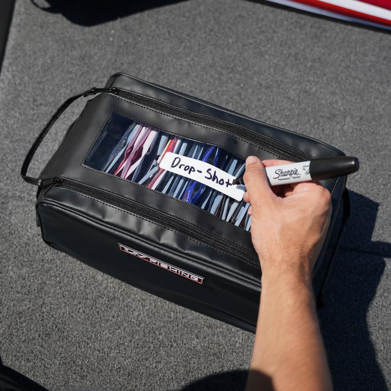Extremely efficient for storing soft plastics. Can fit large worm bags for 10” worms and can fit clam shells for keitechs and other swimbaits.