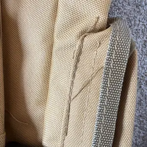 One is damage due to loose threading at the top of the bag. I don’t like the drawstring for the main compartment and it seems weak. Material questi