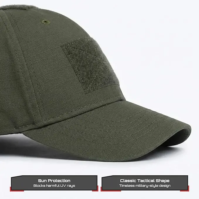 ·Customizable design. Patch panels on the front, top, and back of mens tactical cap allow you to attach badges, name tags or small tactical accessories, and other patches for a personalized and functional look.