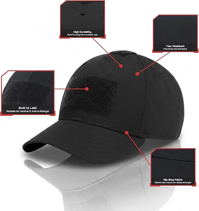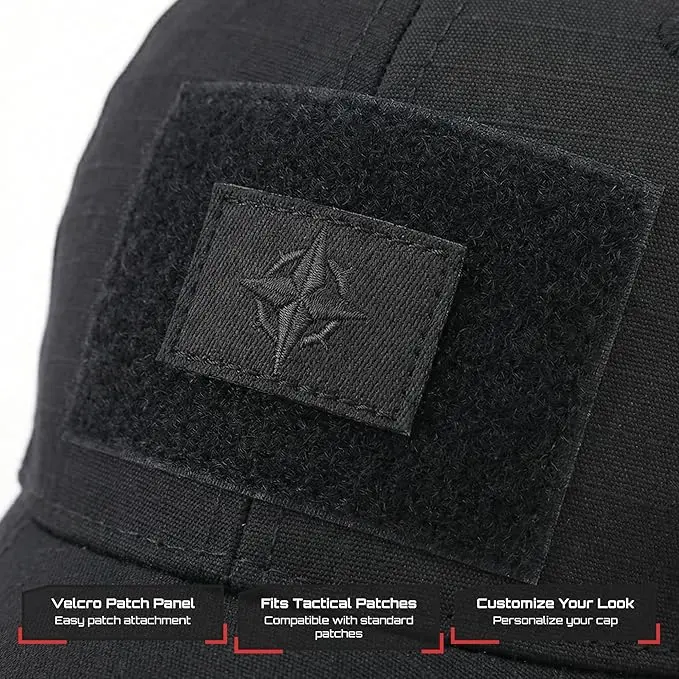 Tactical Baseball Cap - Ripstop Operator Cap with Patch Panels and Adjustable Hook & Loop, Tactical Hats for Men and Women