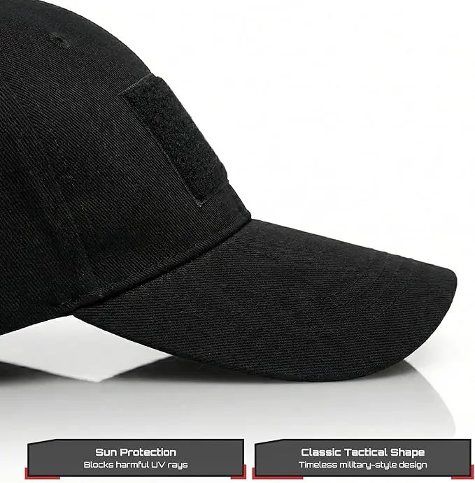 ·Customizable design. Patch panels on the front, top, and back of mens tactical cap allow you to attach badges, name tags or small tactical accessories, and other patches for a personalized and functional look.