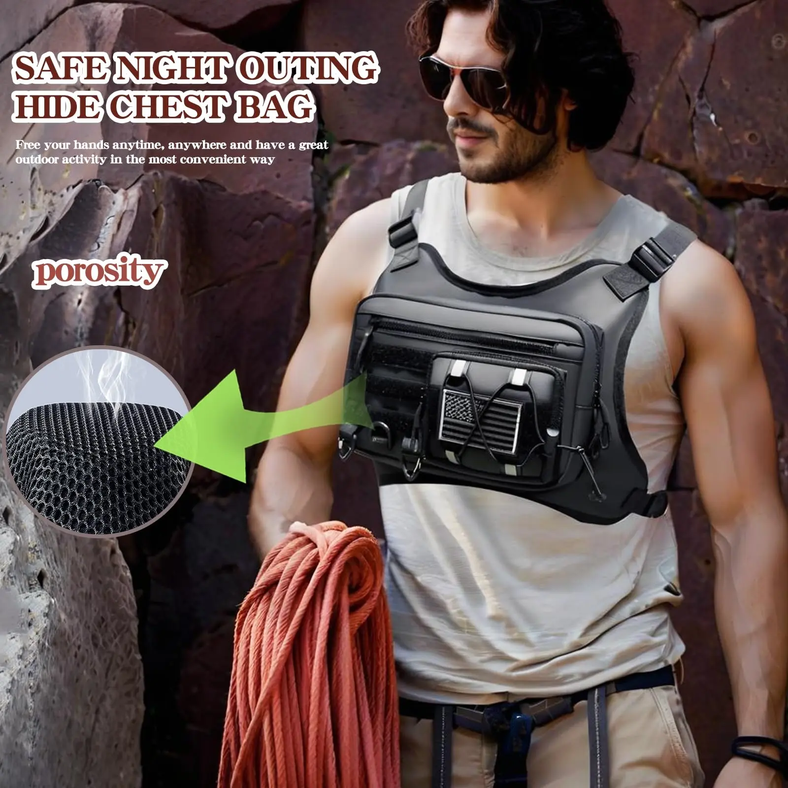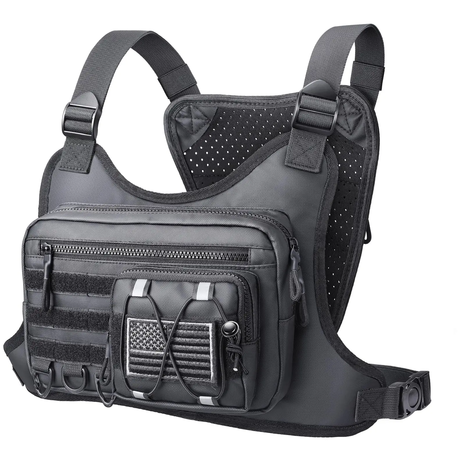 Durable & Outdoor Friendly: Chest pack is made of premium polyester fabric that is durable, water-resistant and dust-resistant. Outdoor Chest bag rig keep your belongings dry during outdoor activities, running and hiking. Heavy-duty construction keep cell phones, EDC tools, headphones, and other devices safe during outdoor adventures or camping.