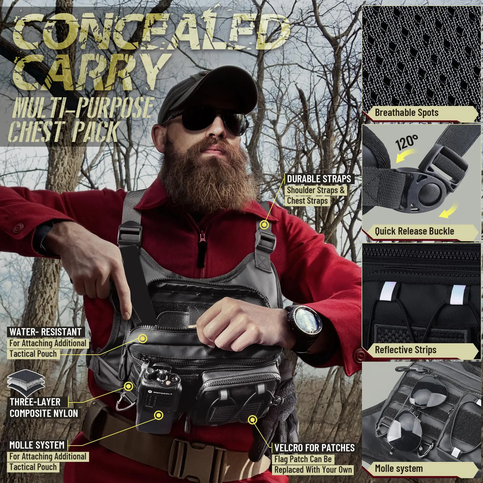 Hand-Free & Anti Theft: Chest bag can keep your belongings in front of your body to achieve the effect of anti-theft, and at the same time can free your hands great for running, cycling, hiking, and exercise. In a wilderness situation, this EDC chest pack rig can be used for quick access to a walkie-talkie, tourniquet, flashlight, eyeglasses.