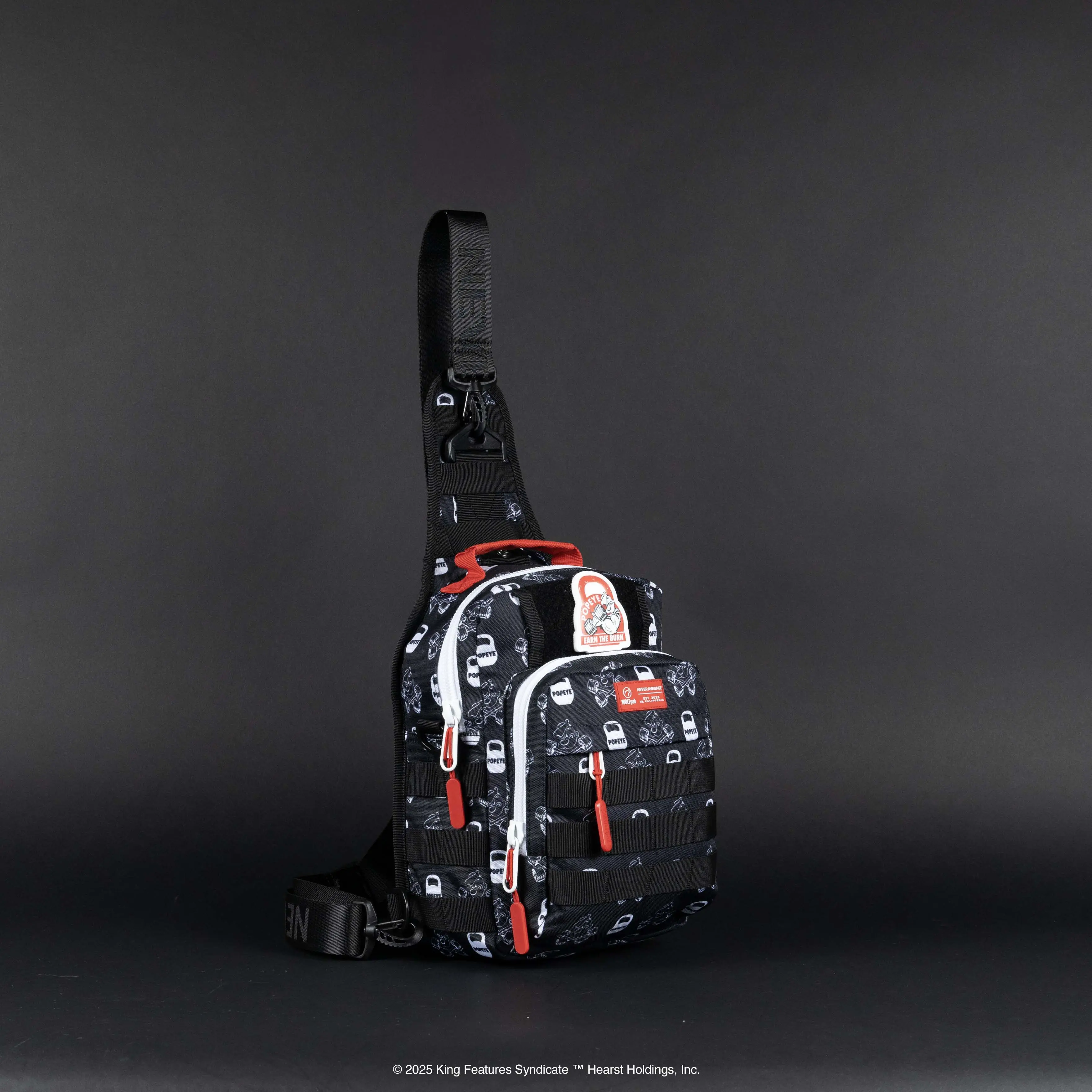 SLING DAYPACK Built with durable, weather-resistant nylon, our tactical crossbody sling bag offers ample storage, internal organization pockets, and a YKK extra thick dual-zipper design for quick access to your essentials. Whether worn as a back sling, chest sling, or shoulder bag, it’s a versatile option for both men and women.