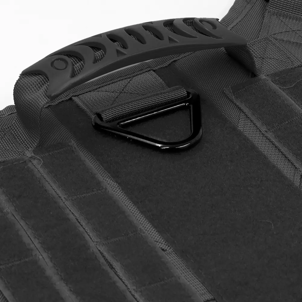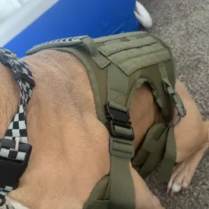 This is a durable harness with plenty of space for patches. Overall, it’s well made and works well. The only downside is sizing. I ordered a large for my 10-month-old, 85 lb German Shepherd, and it was a little short and rubbed slightly between his legs, so consider sizing up for larger dogs.