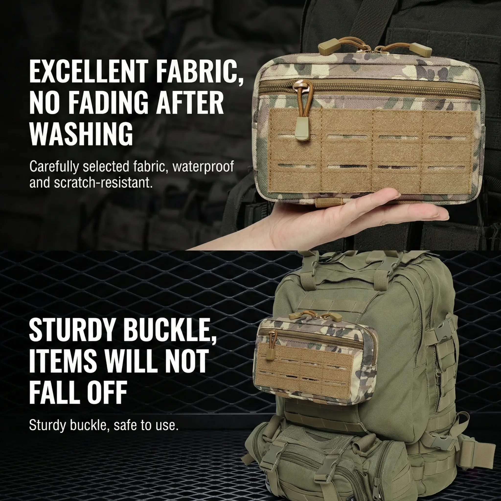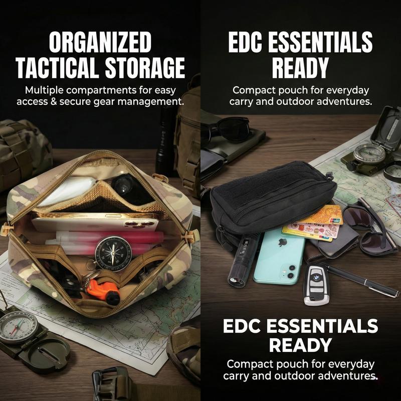 Made from 1000D nylon, this tactical pouch is durable and water-resistant. It offers long-term durability, keeping your gear safe and dry. Sturdy double zippers allow quick opening and flatlaying. Easily see what you have with clear visibility.