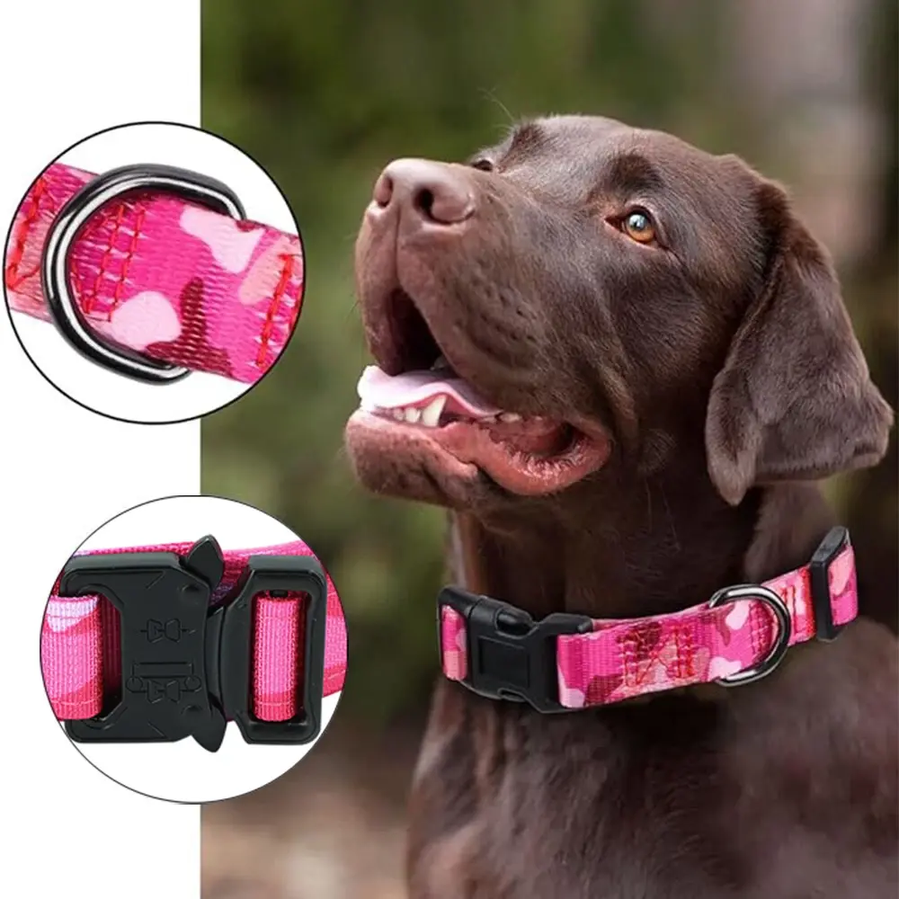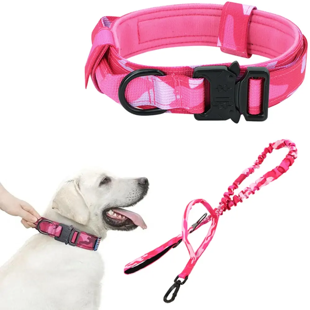 Tactical Pink Camouflage Dog Collar and Leash Set