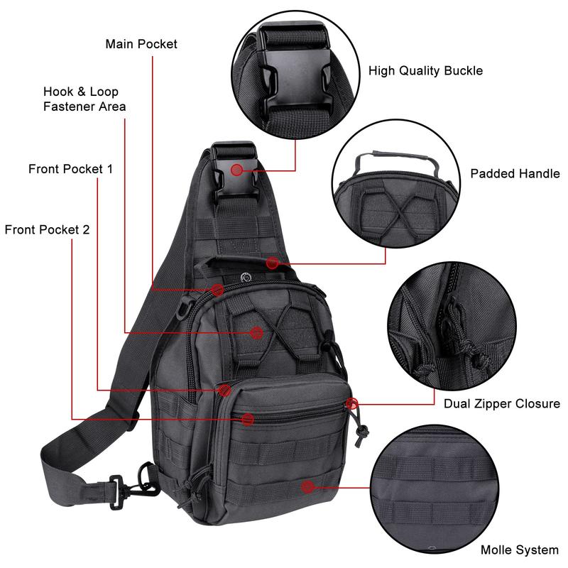 【Crossbody Backpack】★ Made of rugged, weatherproof nylon material, our tactical crossbody bag features spacious compartments, internal organization pockets, and a dual zipper design for quick access to your gear. With sling, chest strap, or shoulder carry options, this backpack is a unisex backpack.