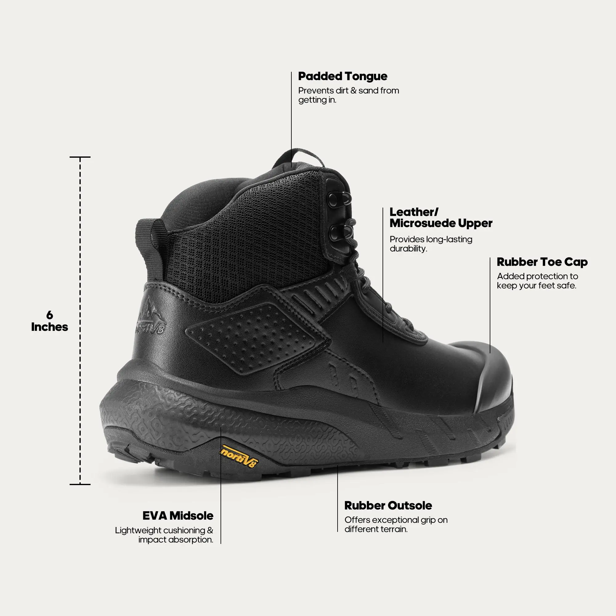 The removable, shock-absorbent insole offers all-day comfort, reducing foot fatigue. The flexible EVA midsole absorbs shock, enhancing comfort and reducing foot fatigue. This feature makes the workboots perfect for extended wear.