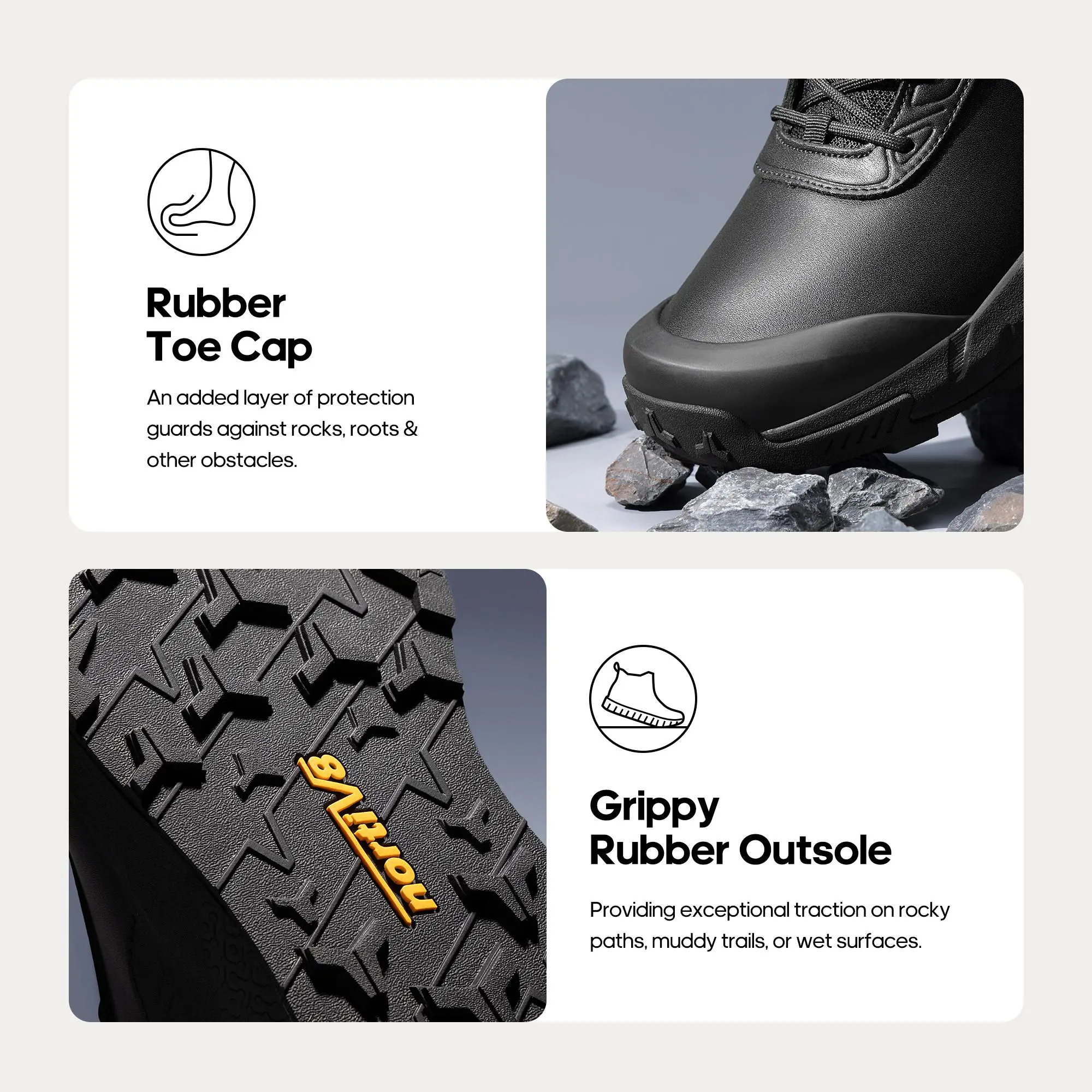 Ankle-high protection wraps and supports the ankles, ensuring stability and comfort. This feature is ideal for rugged environments, providing full protection. The high abrasion-resistant leather enhances durability. Perfect for both indoor and outdoor use, these workboots offer versatility.