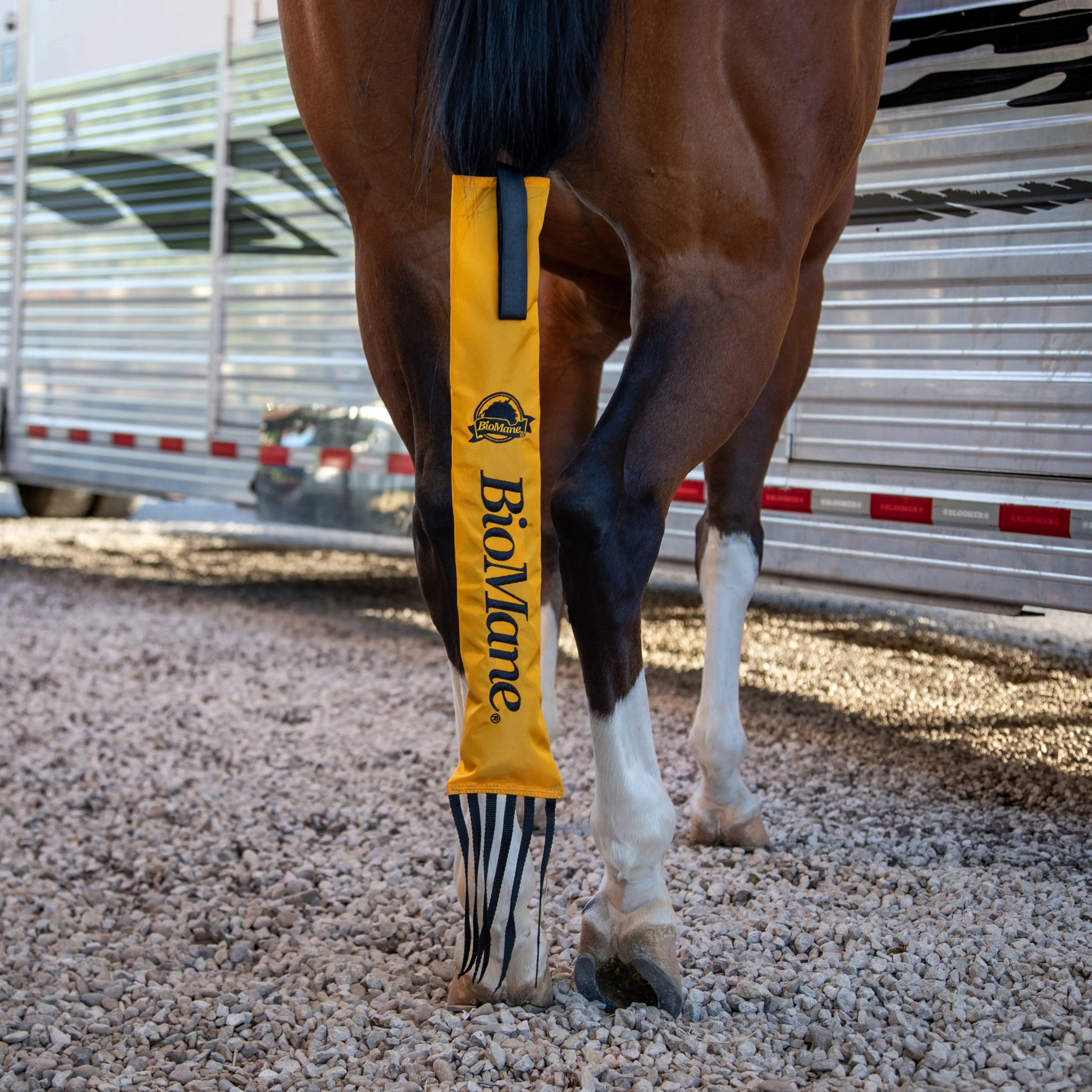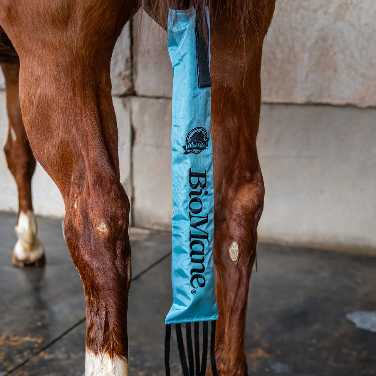 This tail bag is great it stays put allows the horse to steal swat flies while protecting all the amazing products you have applied!