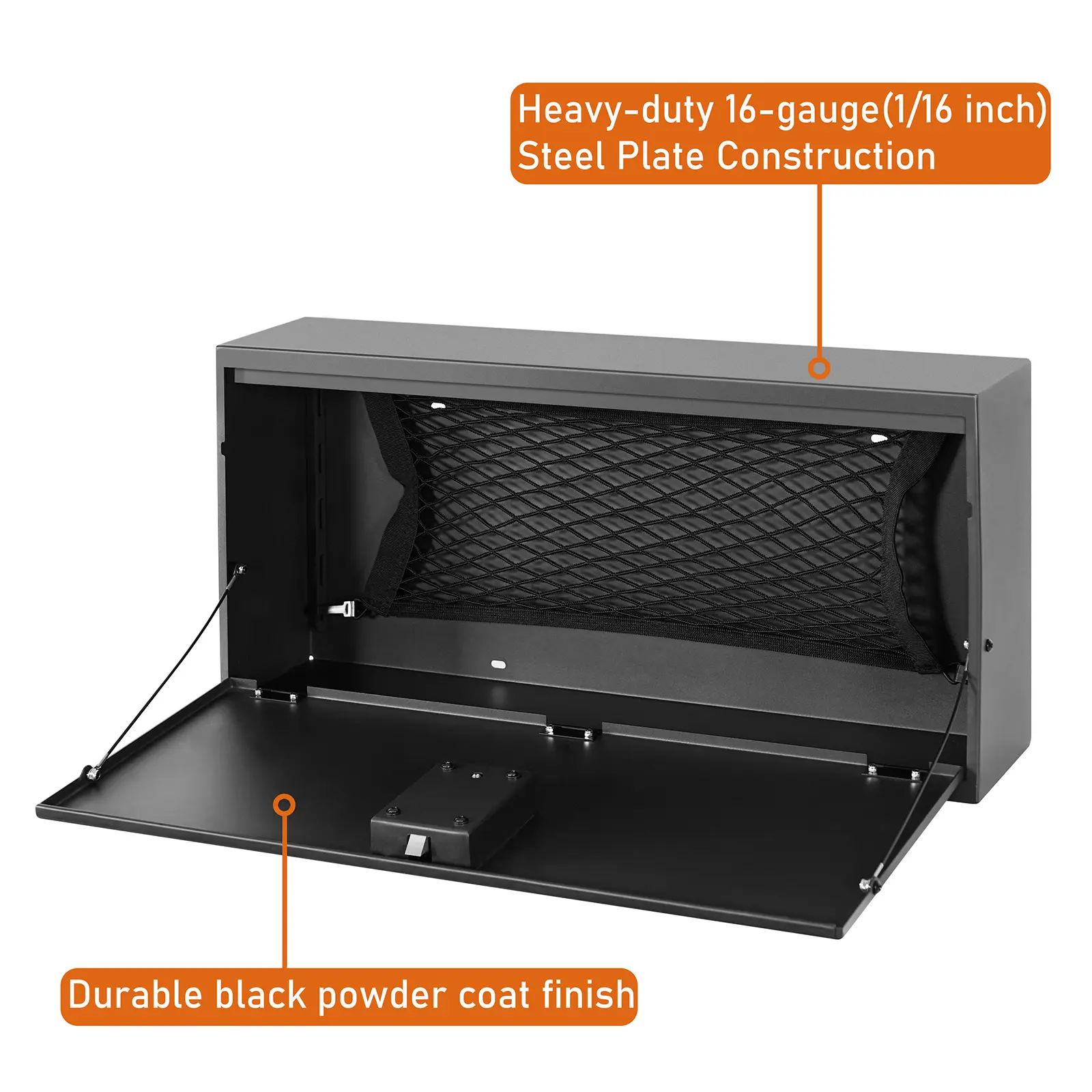 ·Heavy-duty 16-gauge(1/16 inch) steel plate construction