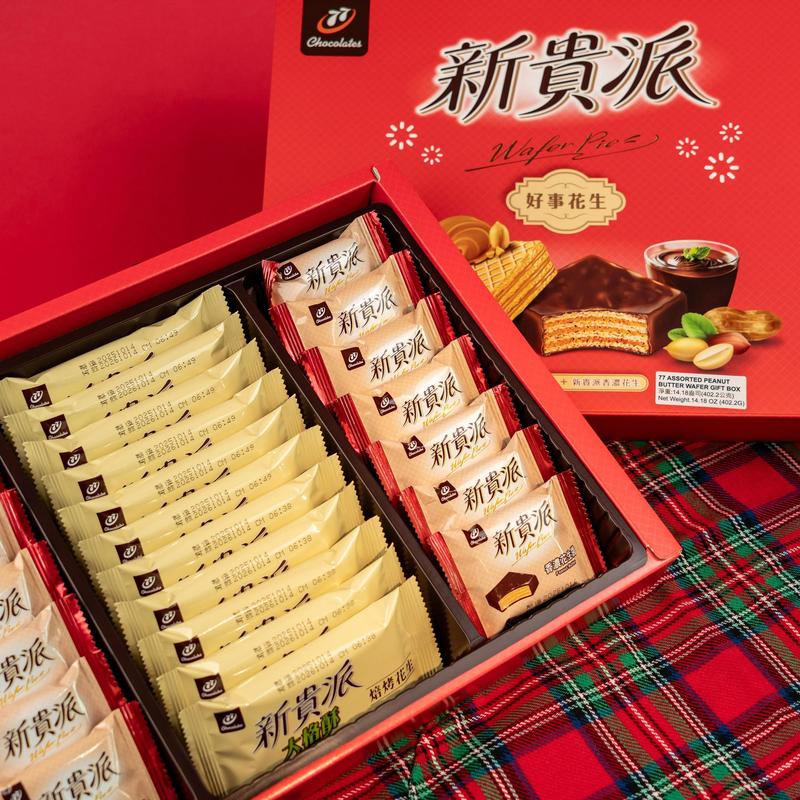 Taiwanese Peanut Wafer Cookies Gift Box - 77 New Sweeties Crispy Snack, Rich Peanut Flavor, 402.2g - Perfect for Chinese New Year & Holiday Gifting