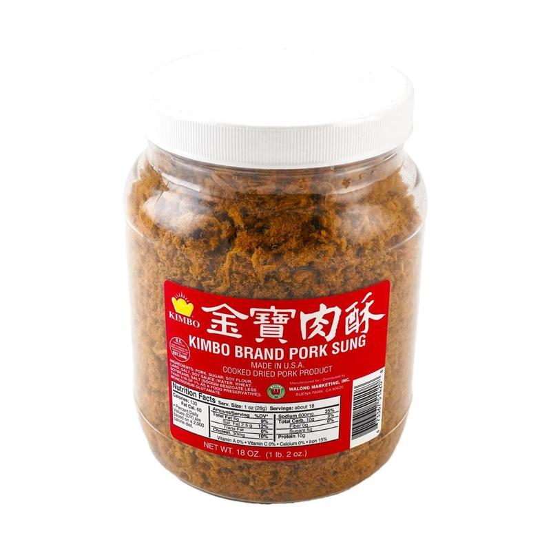 Kimbo Pork Sung (Rousong) is a 18oz (510g) pack of dry, shredded pork. It's USDA certified, ensuring safety and quality. This savory meat floss is a staple in many Asian households. Use it as a topping, condiment, or snack. Its texture is similar to coarse cotton, with a soy saucy, sweetened, salty taste. Perfect for rice, congee, or pastries!