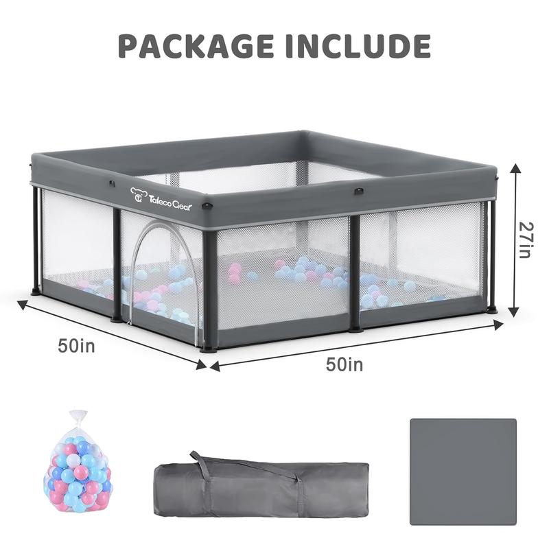 ·LARGE PLAYPEN:The 50*50-inch baby playpen is spacious enough to hold plenty of toys, and we also give away ocean balls. It provides ample space for children to crawl, stand, and play freely, helping babies explore and learn about the world while giving mom more free time.