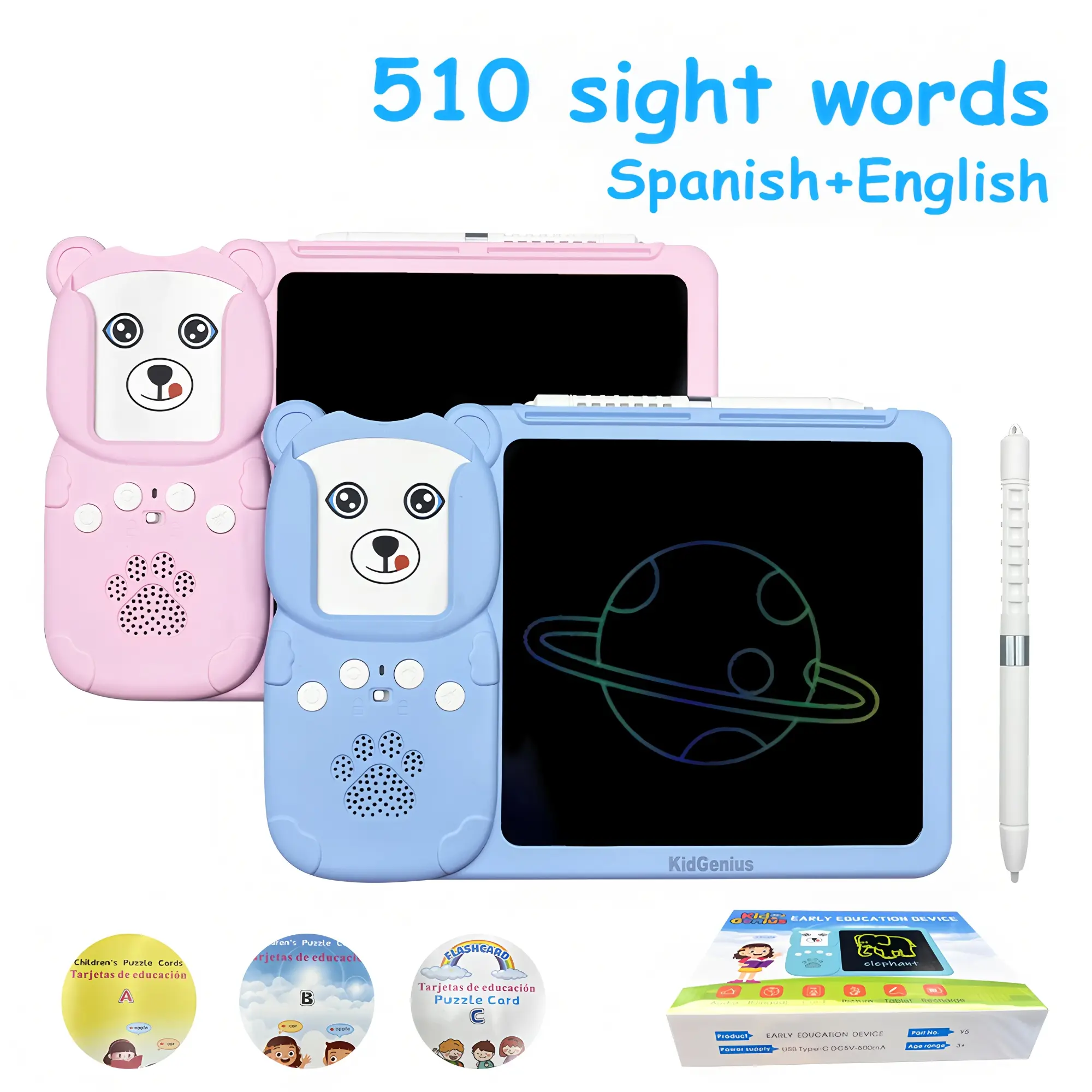 Spanish-English Bilingual Toddler Toys Drawing Board Set with Phonics Flash Cards - Drop-proof LCD Writing Board + Visual Phonics Early Learning Toys
